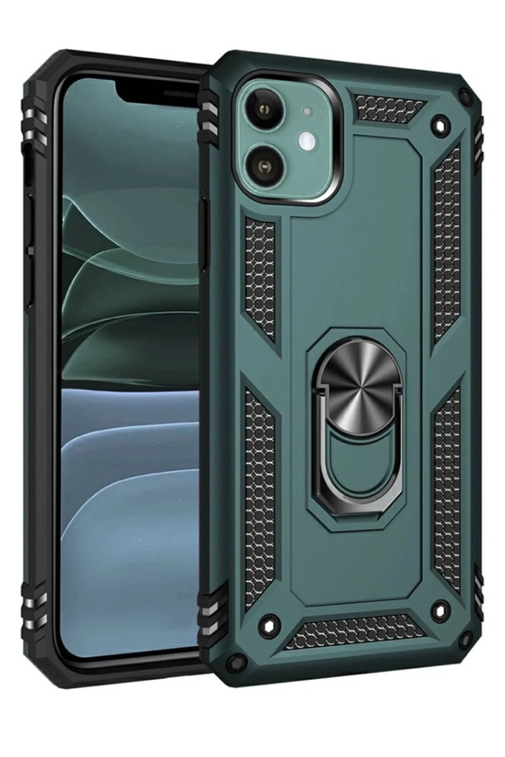 iPhone 11 Kılıf Sofya Yüzüklü Silikon Kapak - Yeşil