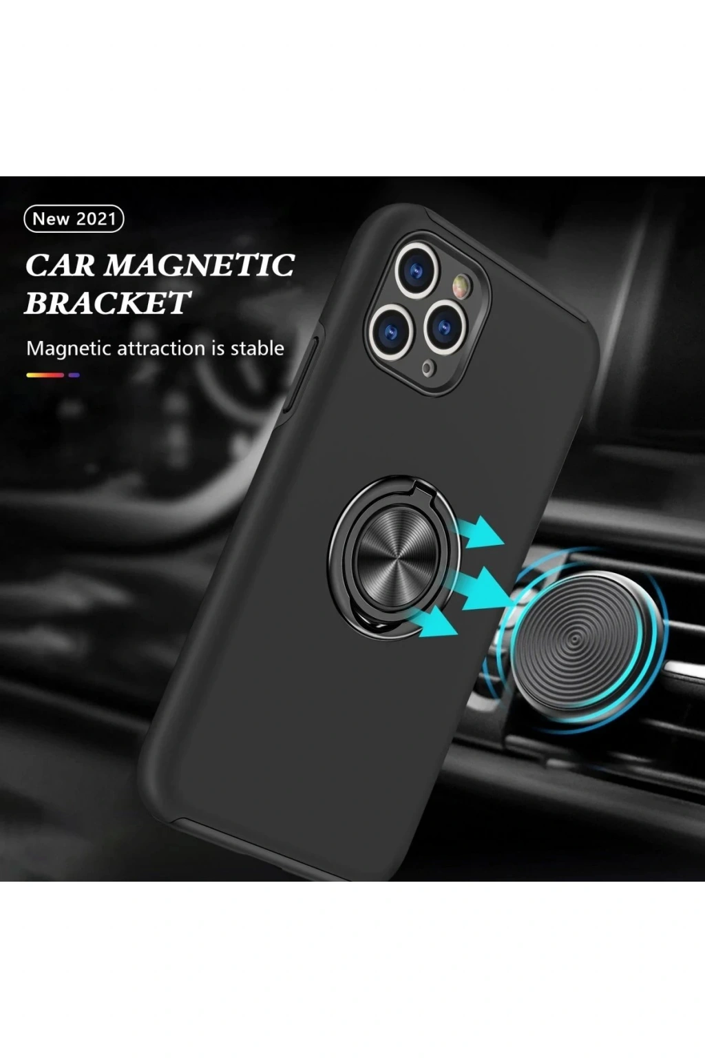 Kapak üzerinde yer alan 360° dönebilen silindir metal yüzük, hem stand işlevi görür hem de mıknatıs özelliği sayesinde araç içi manyetik telefon tutucularla tam uyum sağlar.