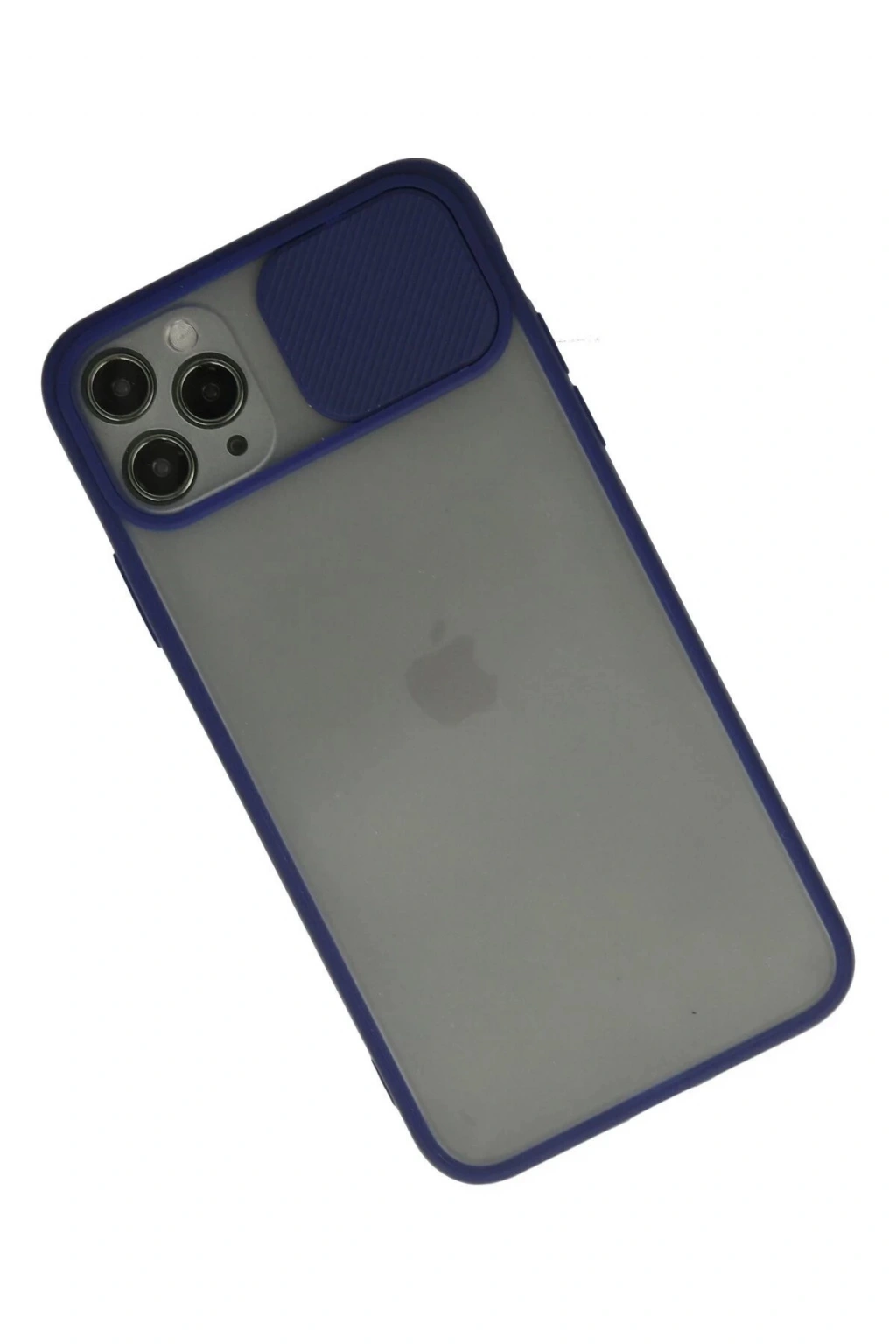 iPhone 11 Pro Max Kılıf Palm Buzlu Kamera Sürgülü Silikon - Lacivert