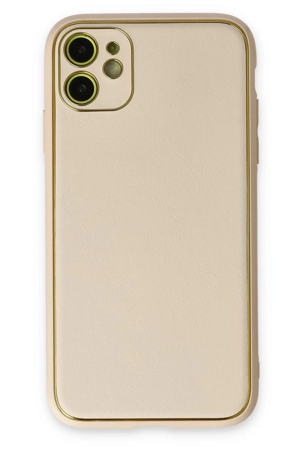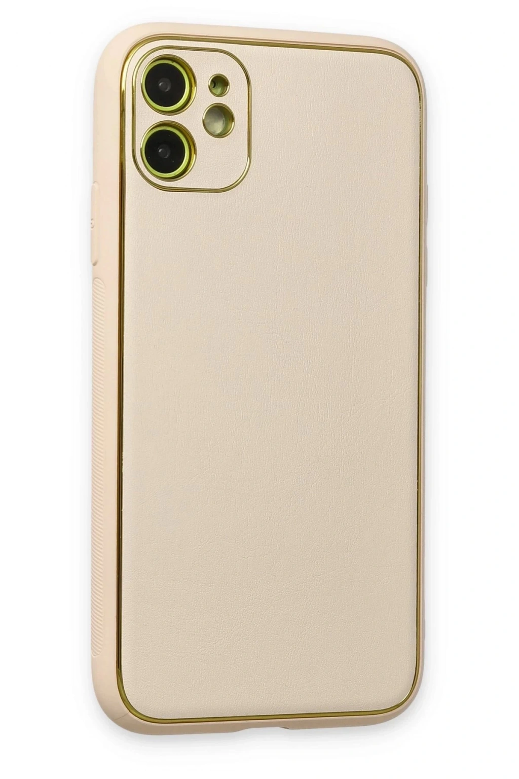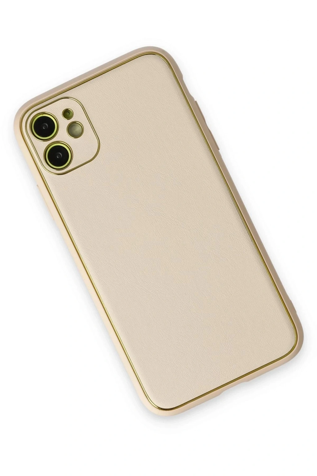 iPhone 12 Kılıf Coco Deri Silikon Kapak - Gold