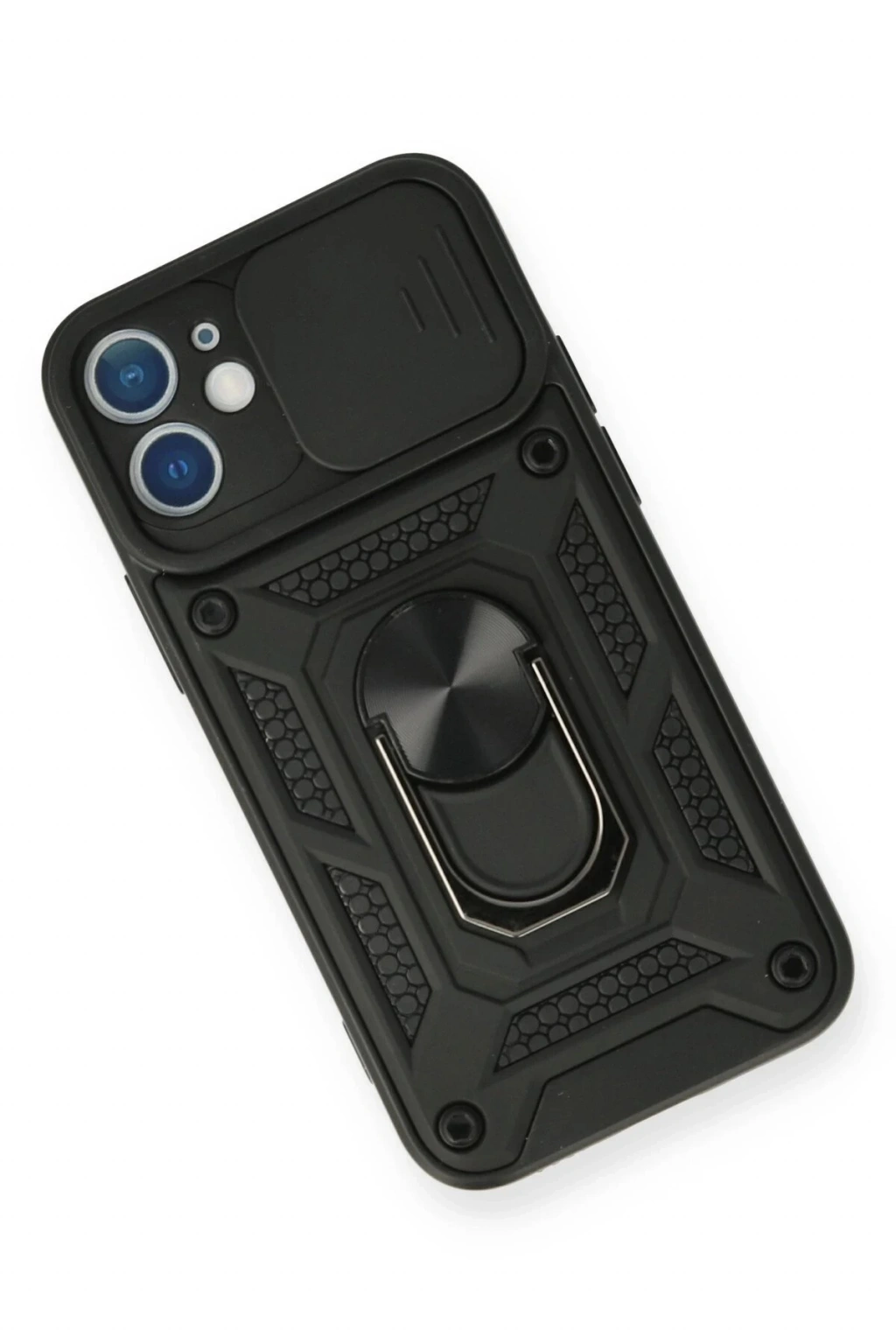 iPhone 12 Mini Kılıf Pars Lens Yüzüklü Silikon - Siyah