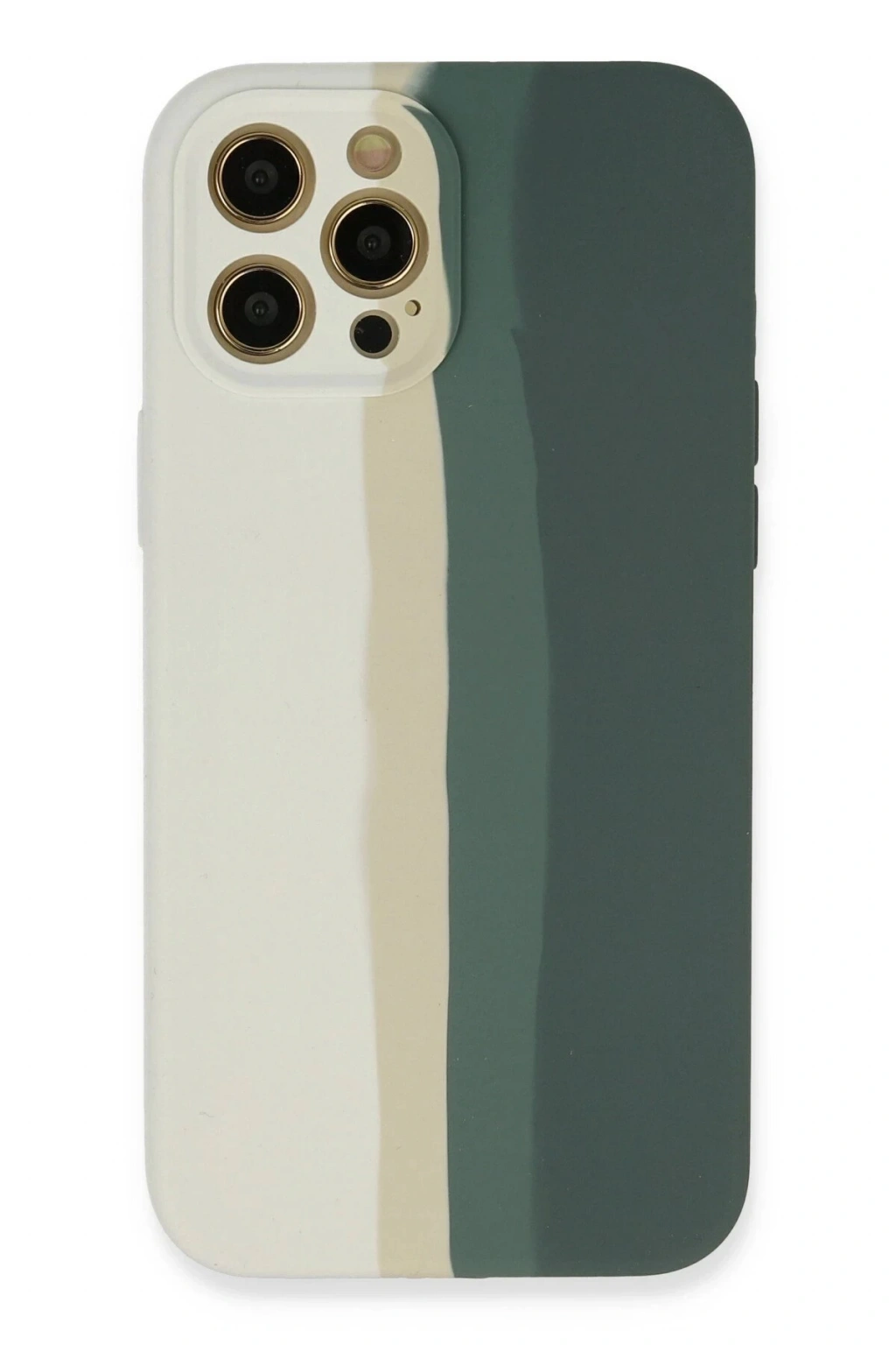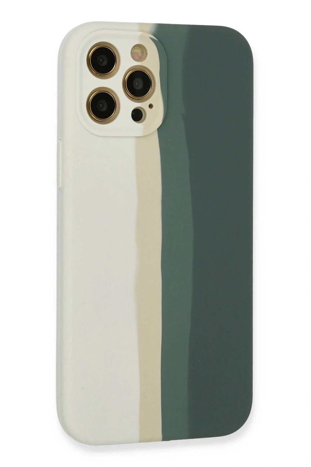 iPhone 12 Pro Kılıf Ebruli Lansman Silikon - Beyaz-Gri