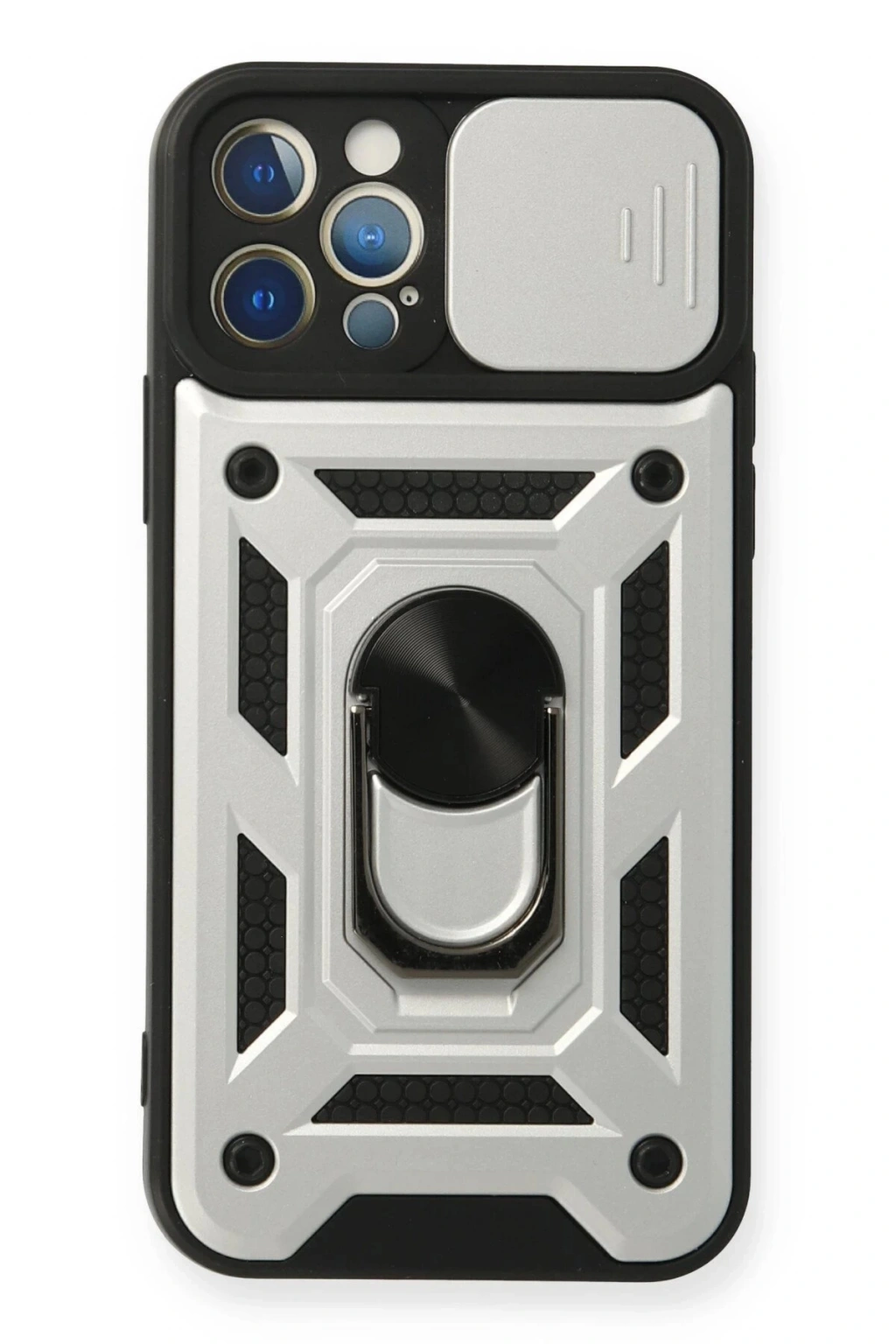iPhone 12 Pro Kılıf Pars Lens Yüzüklü Silikon - Gümüş