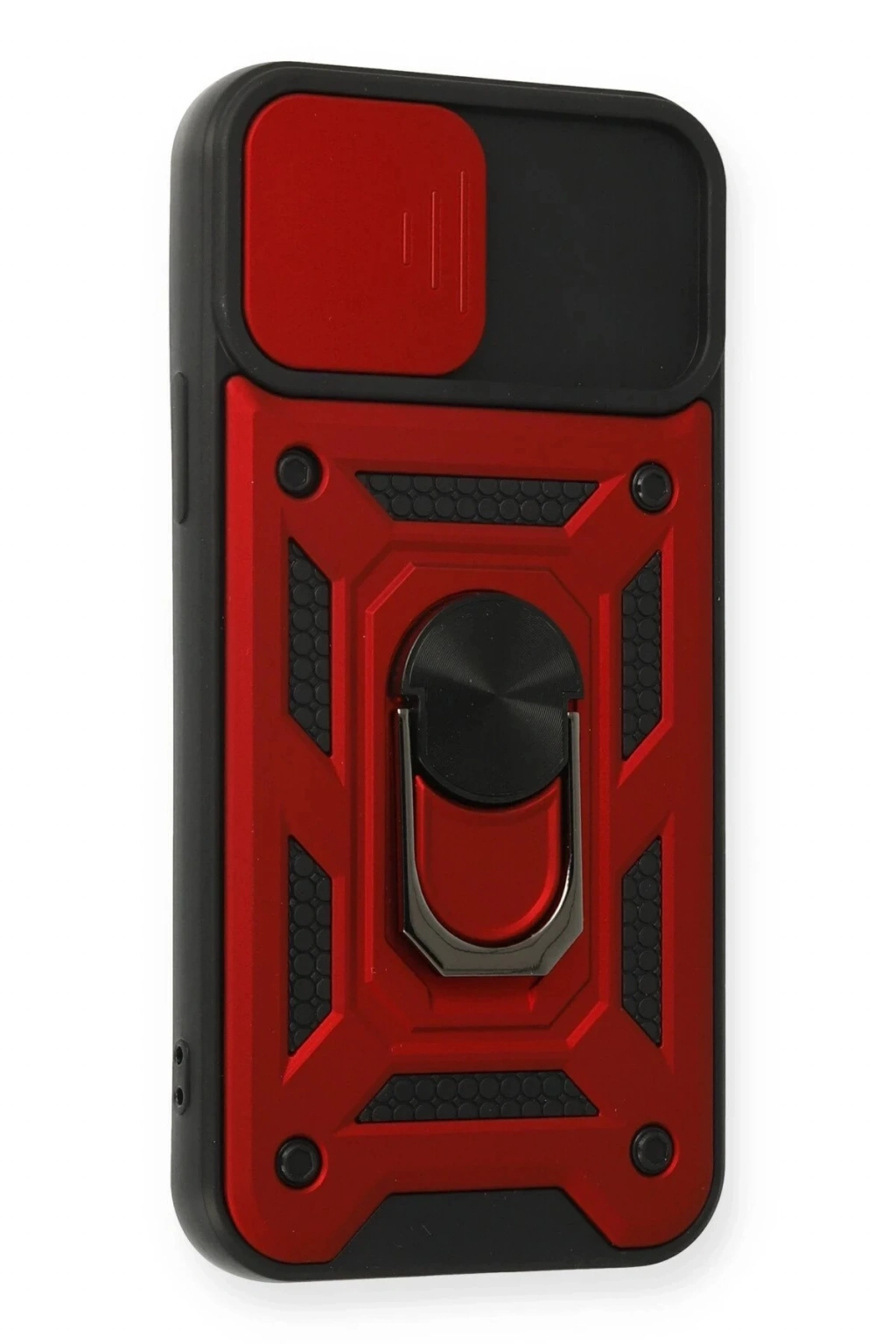iPhone 12 Pro Kılıf Pars Lens Yüzüklü Silikon - Kırmızı