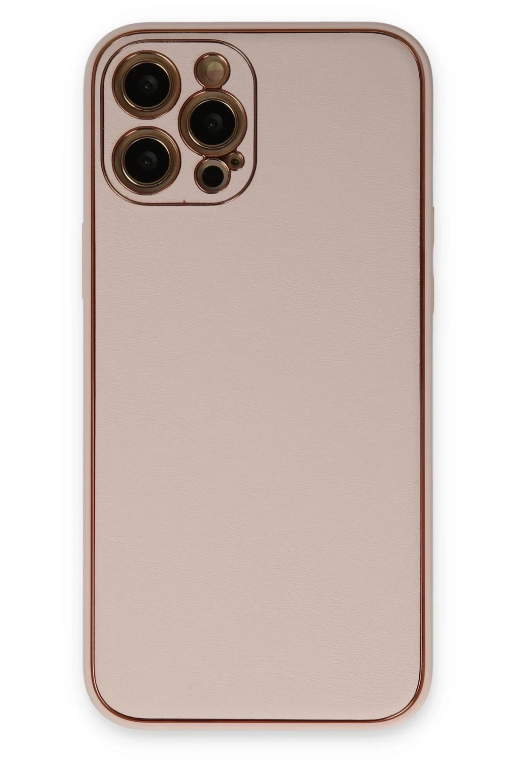 iPhone 12 Pro Max Kılıf Coco Deri Silikon Kapak - Pudra