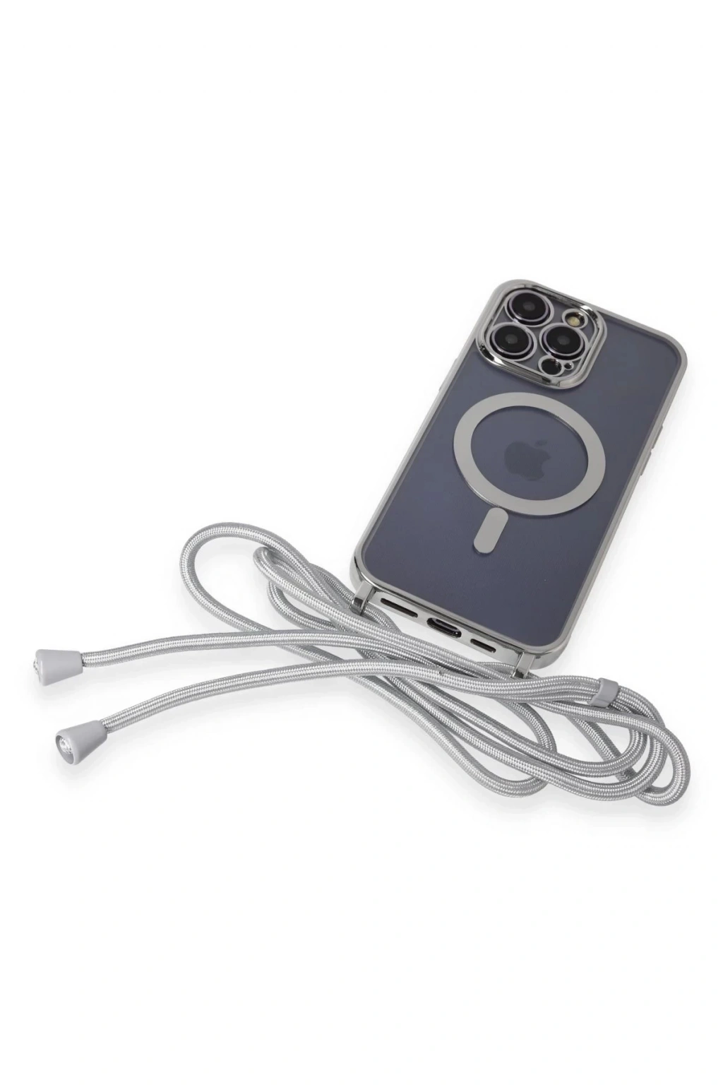 iPhone 12 Pro Max Kılıf Divo Lazer Askılı Magsafe Kapak - Gümüş