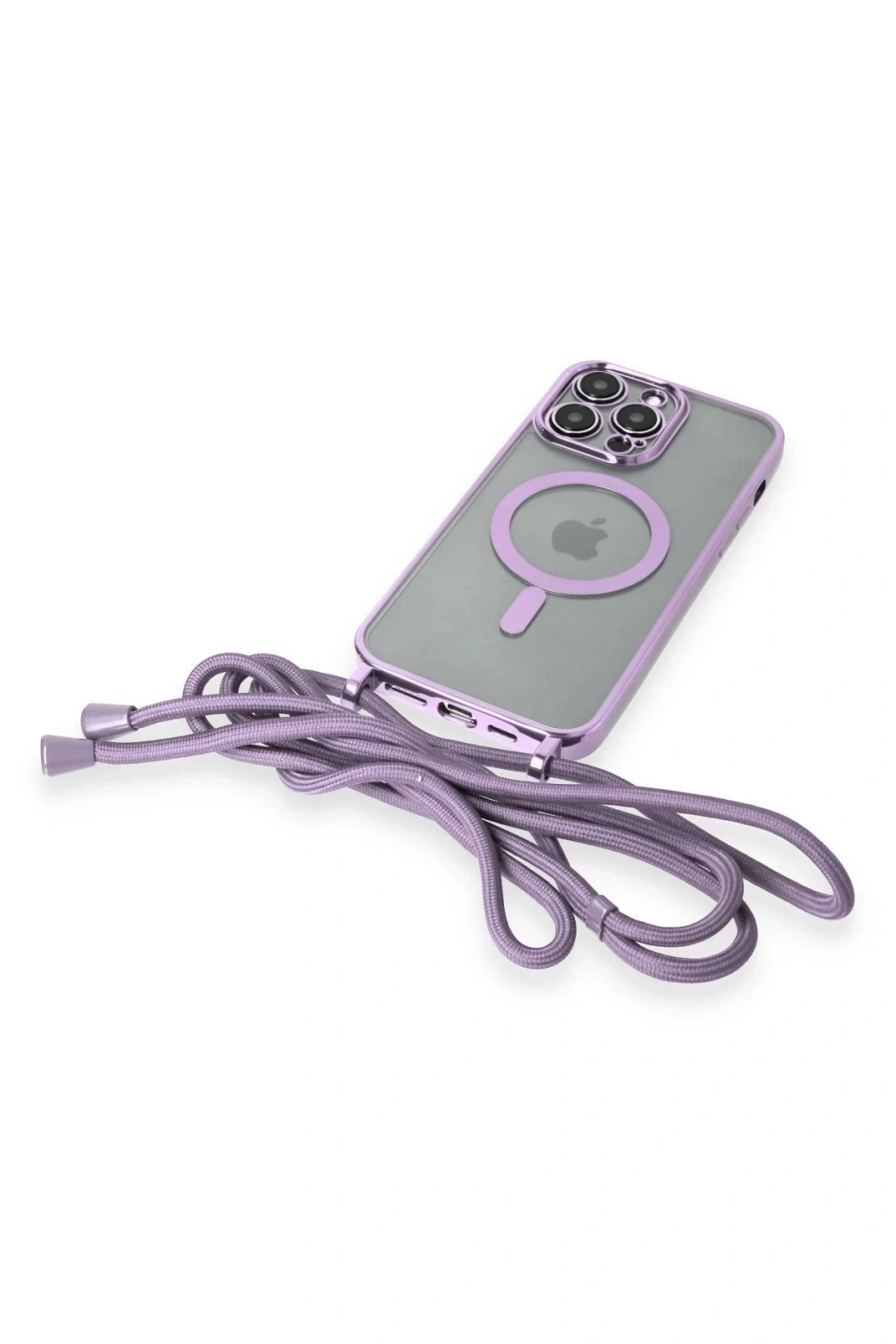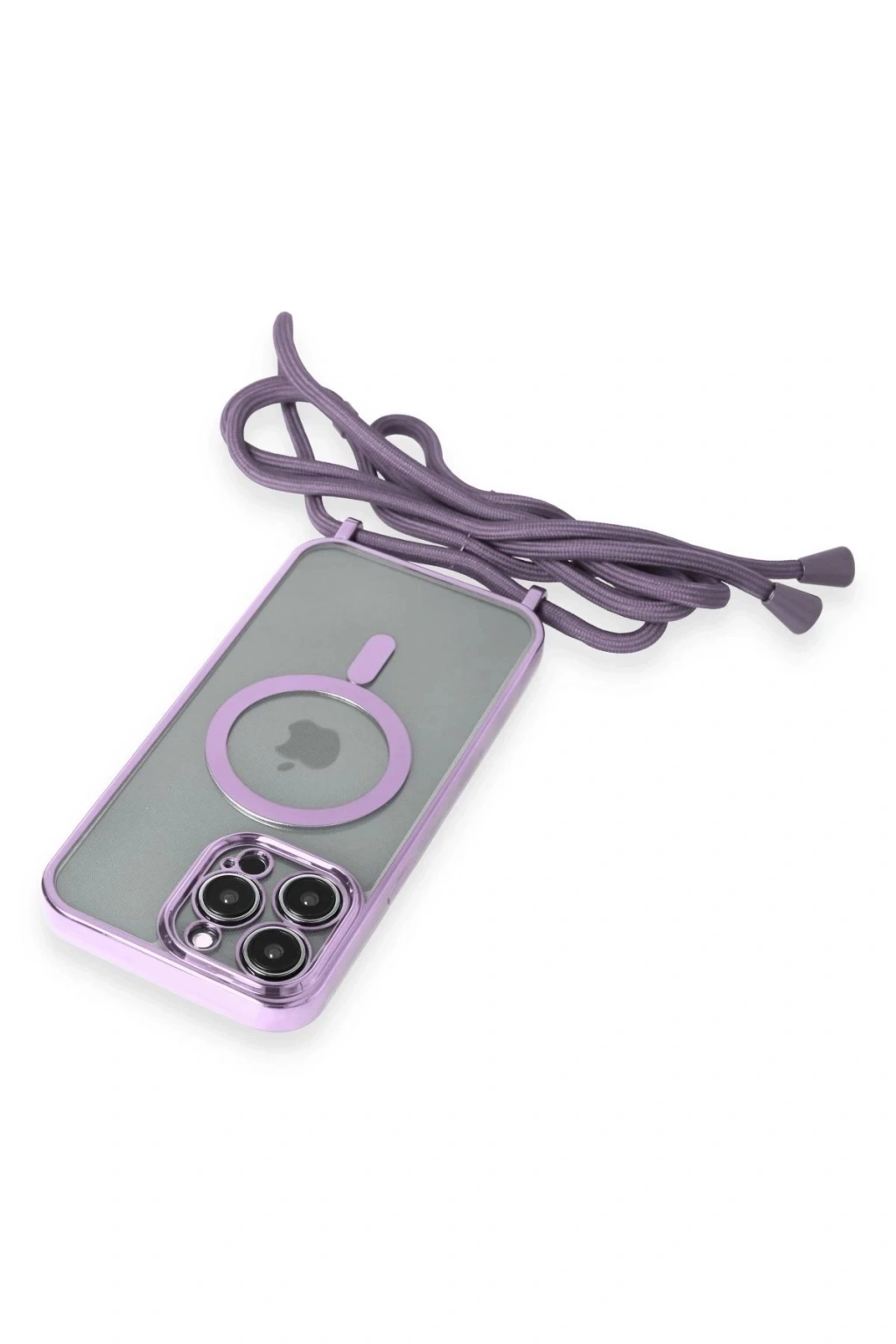 iPhone 12 Pro Max Kılıf Divo Lazer Askılı Magsafe Kapak - Lila