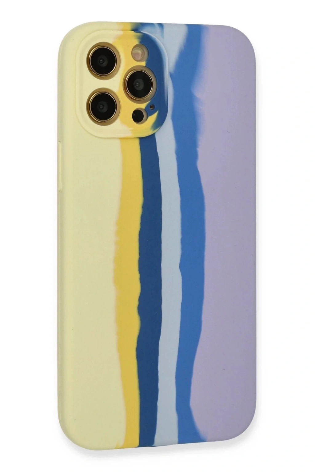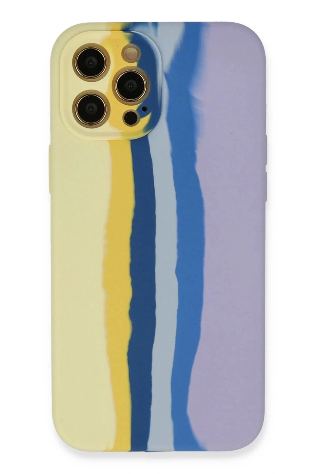 iPhone 12 Pro Max Kılıf Ebruli Lansman Silikon - Sarı-Lila