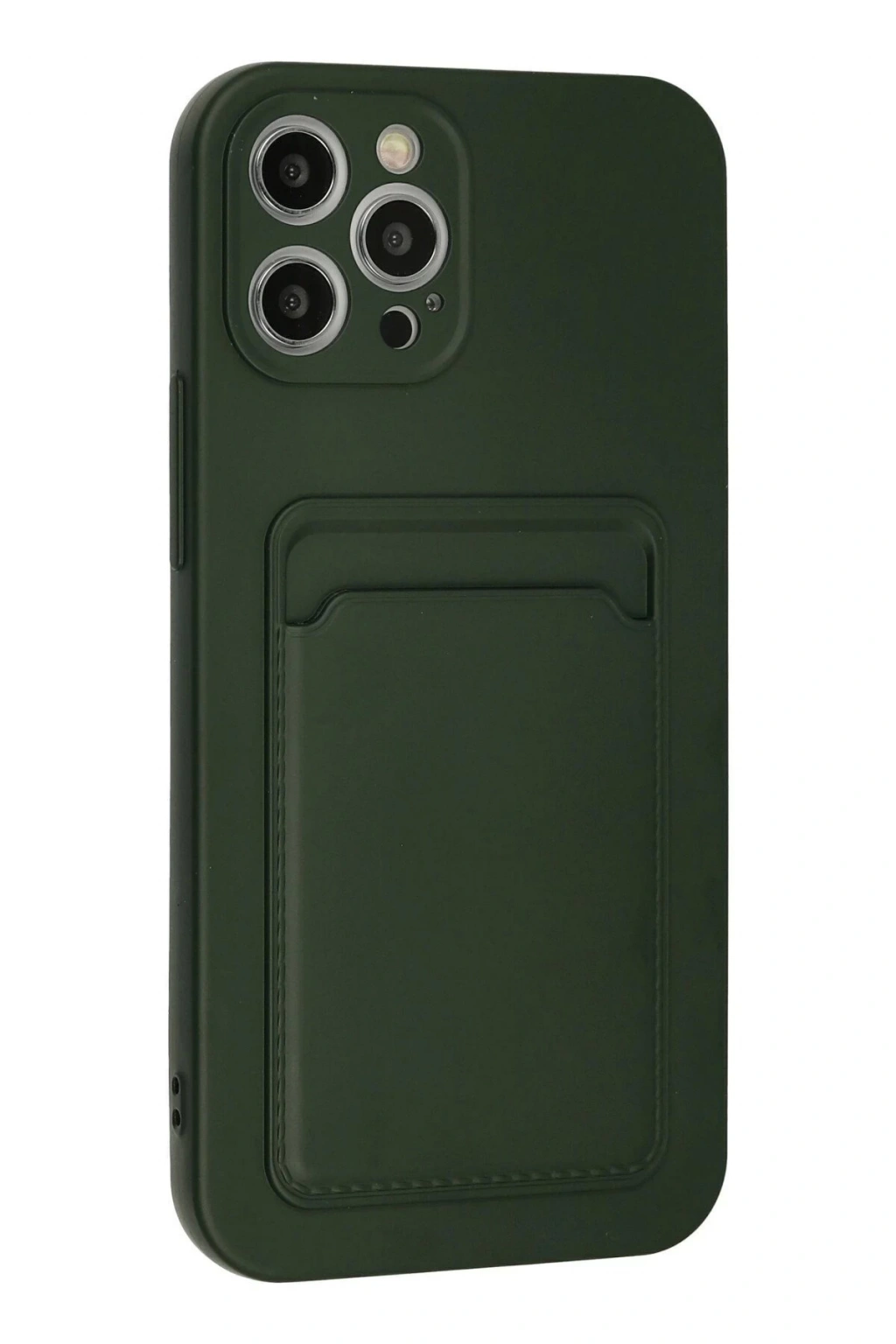 iPhone 12 Pro Max Kılıf Kelvin Kartvizitli Silikon - Koyu Yeşil