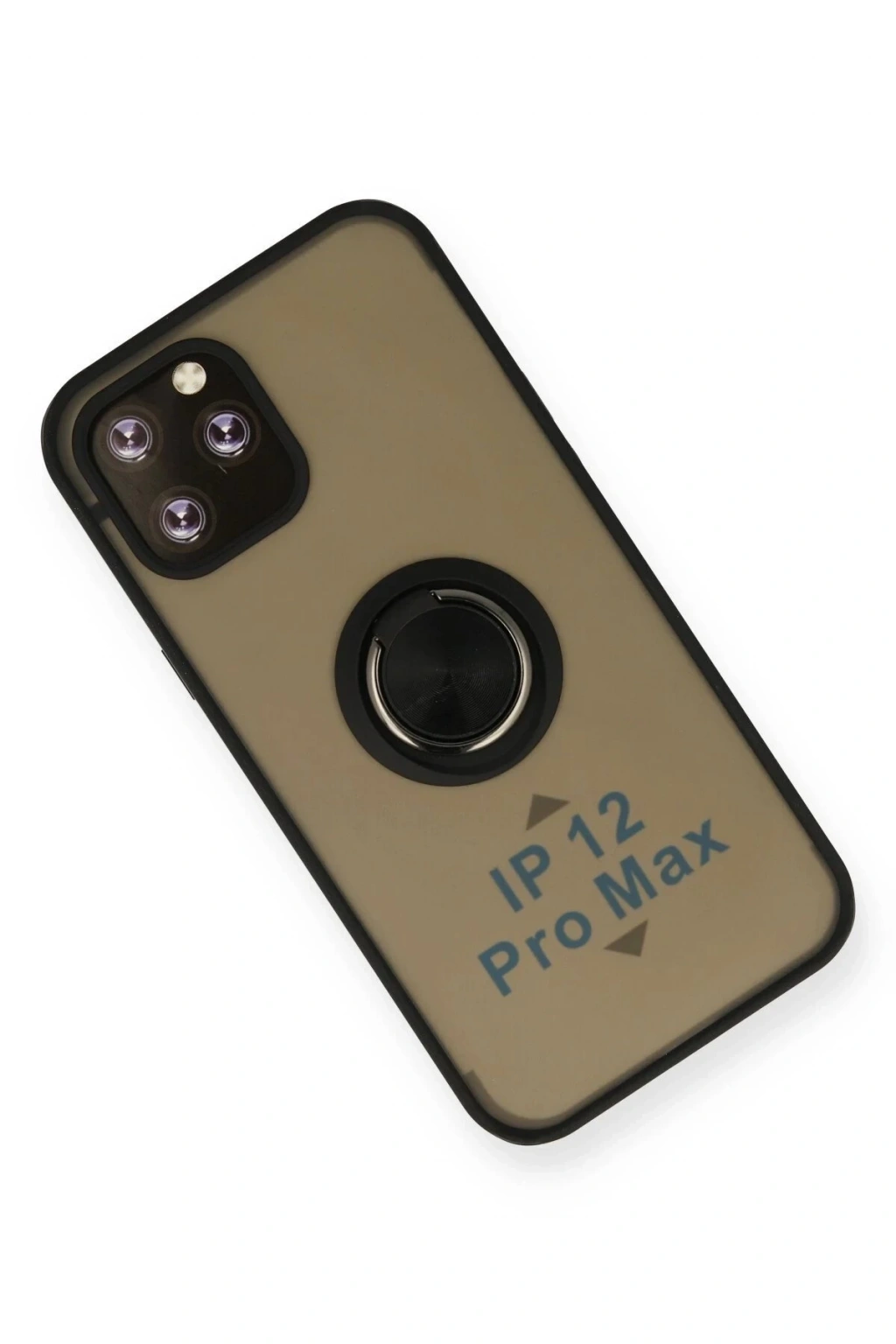 iPhone 12 Pro Max Kılıf Montreal Yüzüklü Silikon Kapak - Siyah