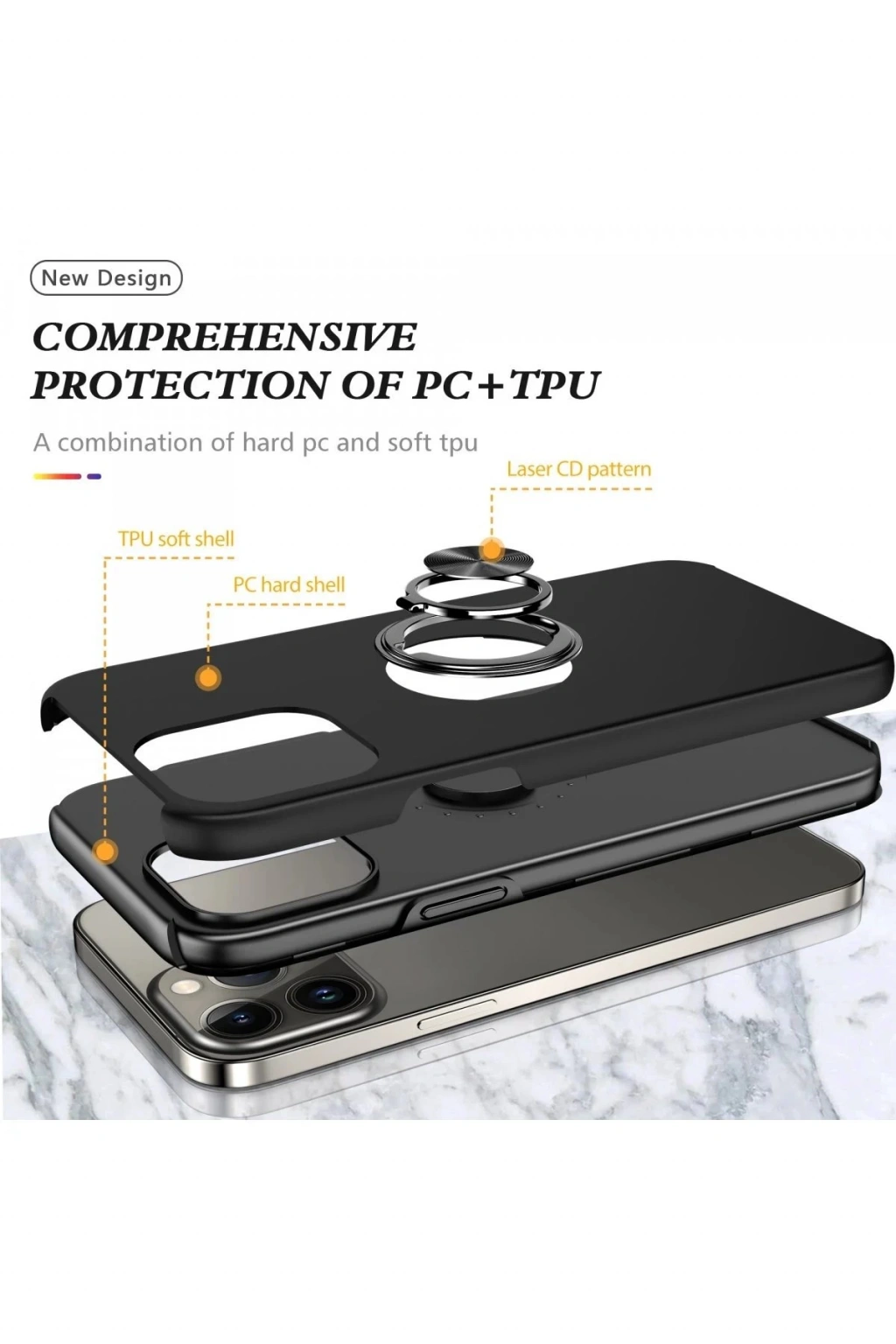 iPhone 13 Pro Kılıf Elit Yüzüklü Kapak - Siyah