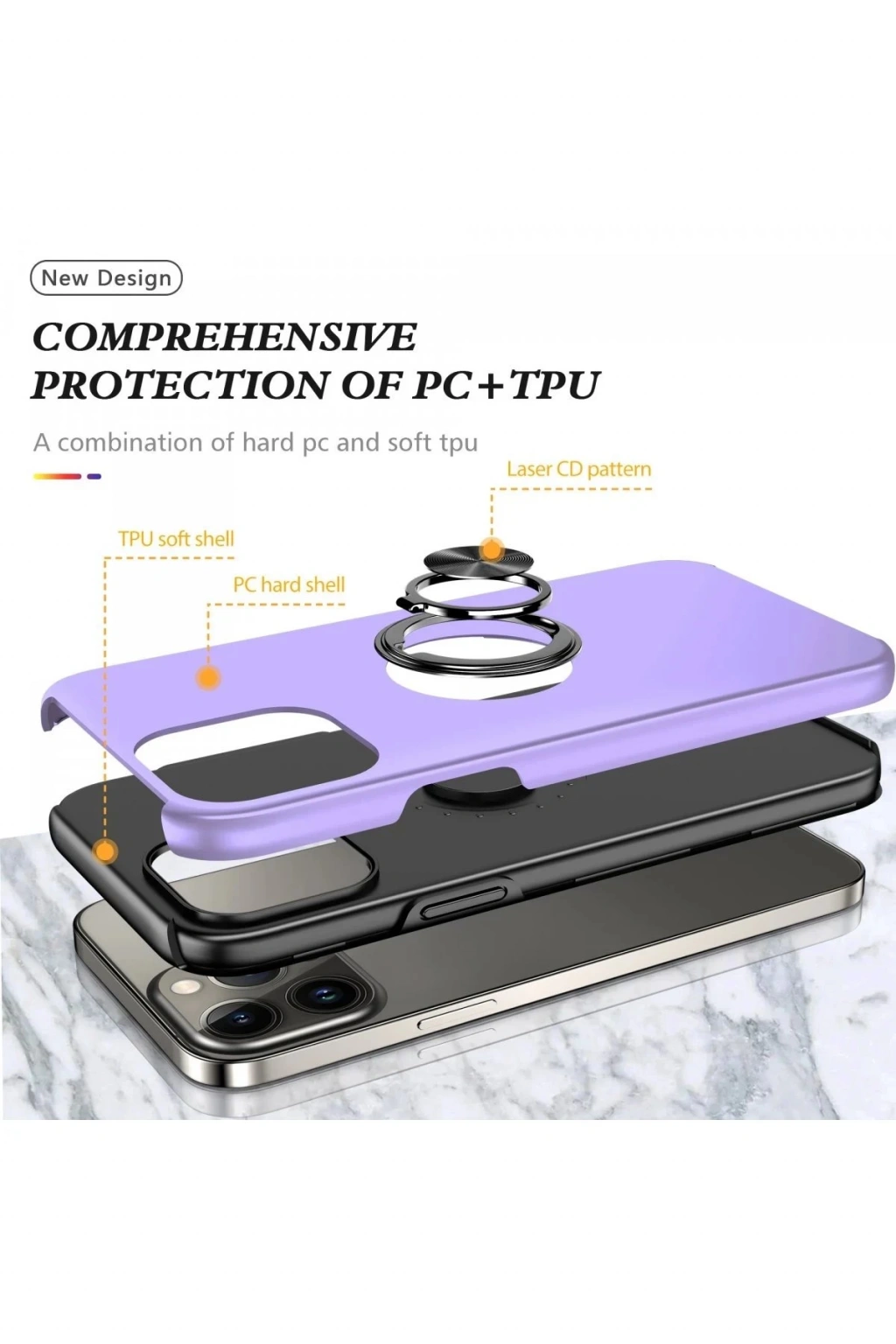iPhone 13 Pro Max Kılıf Elit Yüzüklü Kapak - Mor