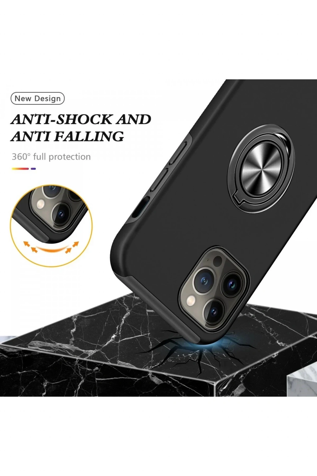 iPhone 13 Pro Max Kılıf Elit Yüzüklü Kapak - Siyah