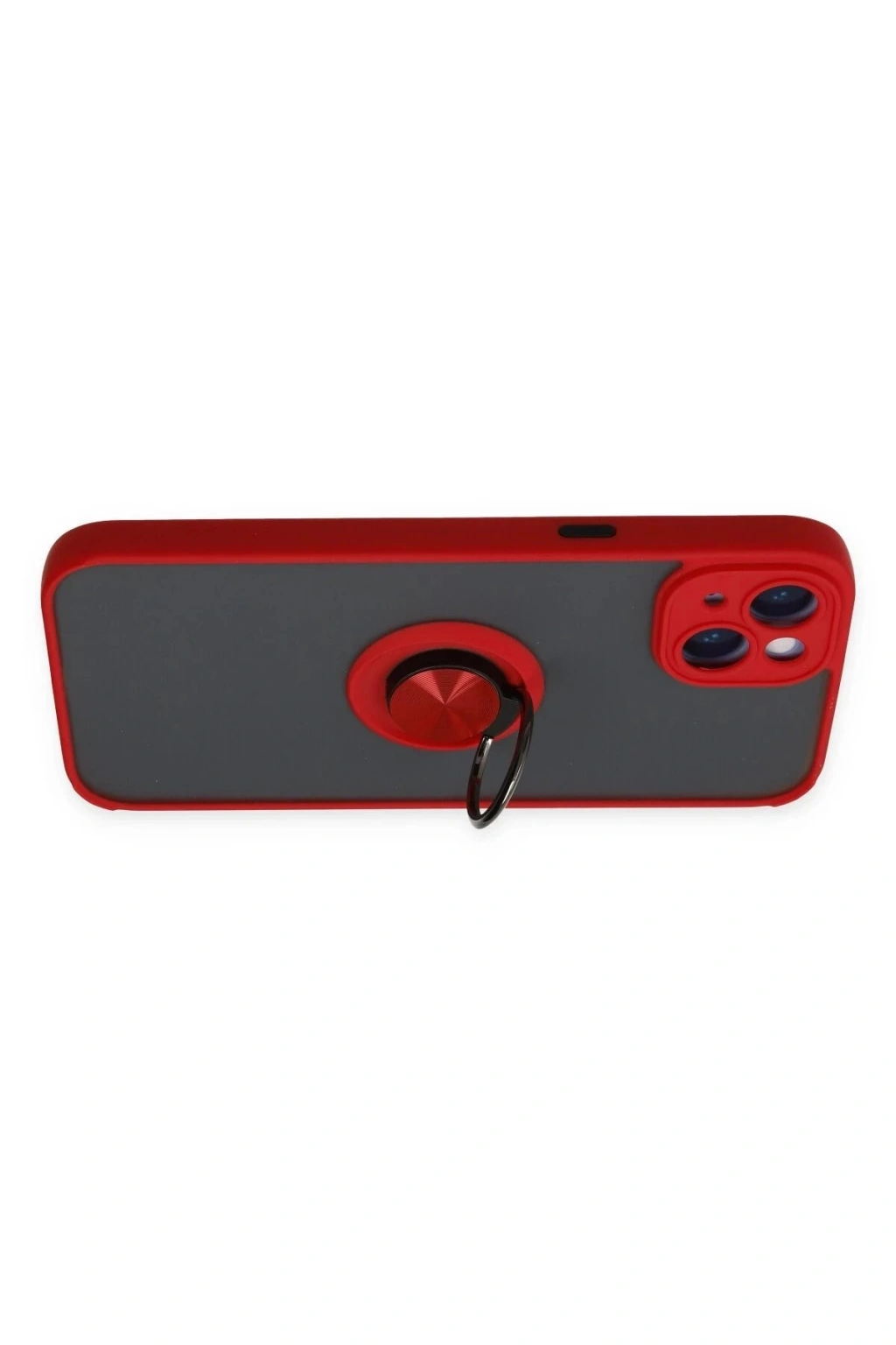 iPhone 14 Kılıf Montreal Yüzüklü Silikon Kapak - Kırmızı