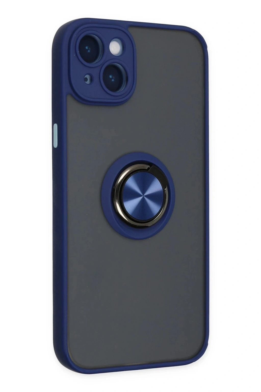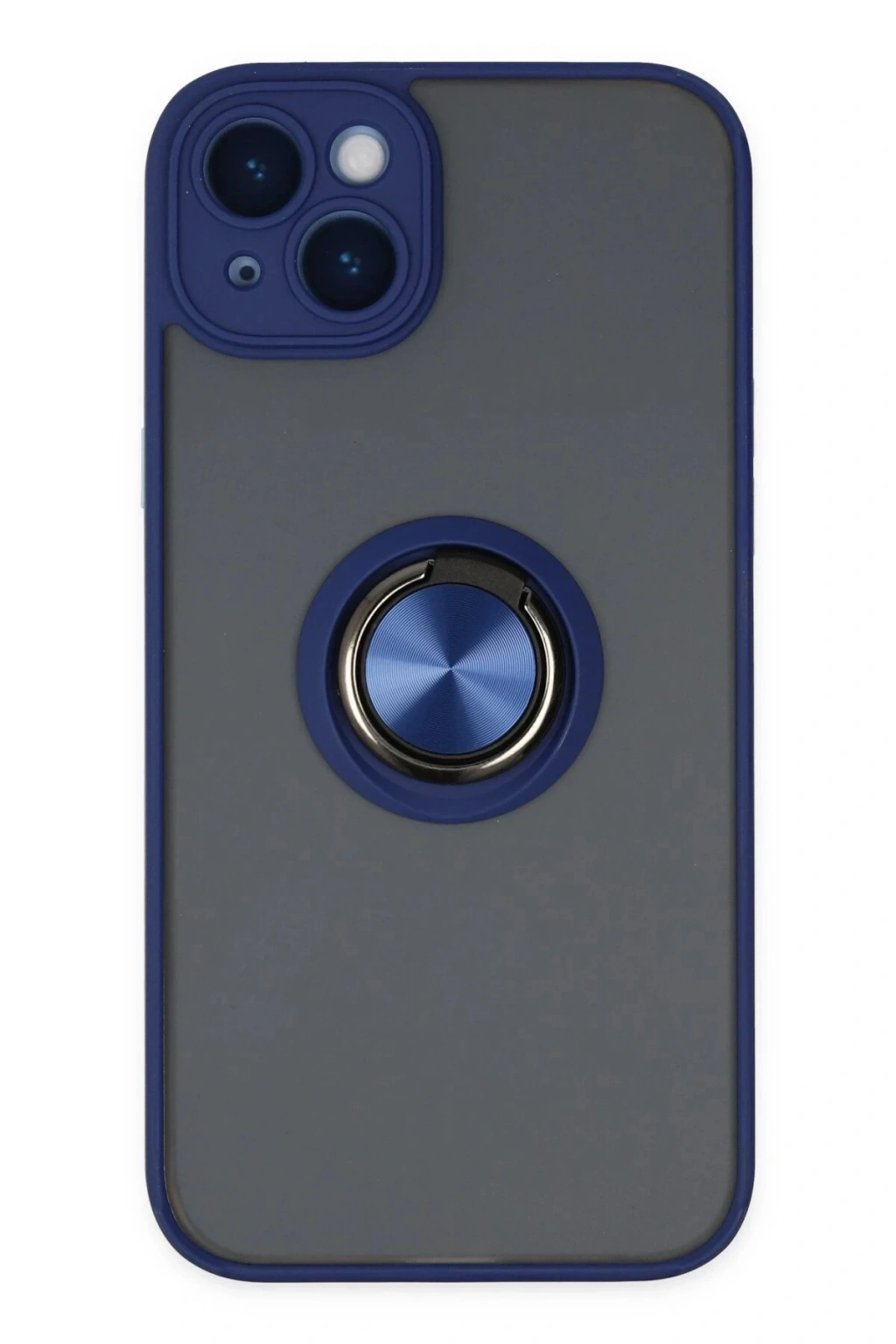 iPhone 14 Kılıf Montreal Yüzüklü Silikon Kapak - Lacivert