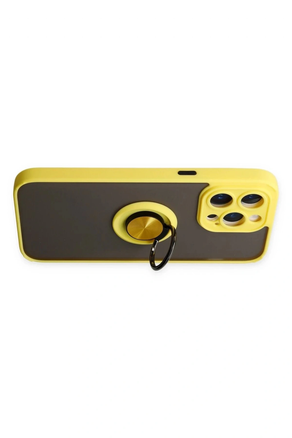 iPhone 14 Pro Max Kılıf Montreal Yüzüklü Silikon Kapak - Sarı