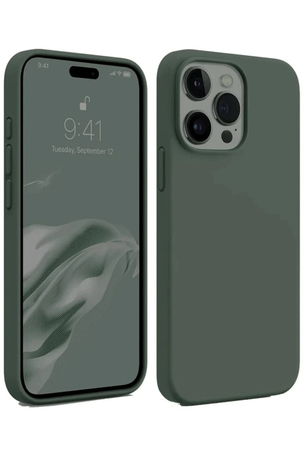 iPhone 15 Pro Max Kılıf First Silikon - Koyu Yeşil