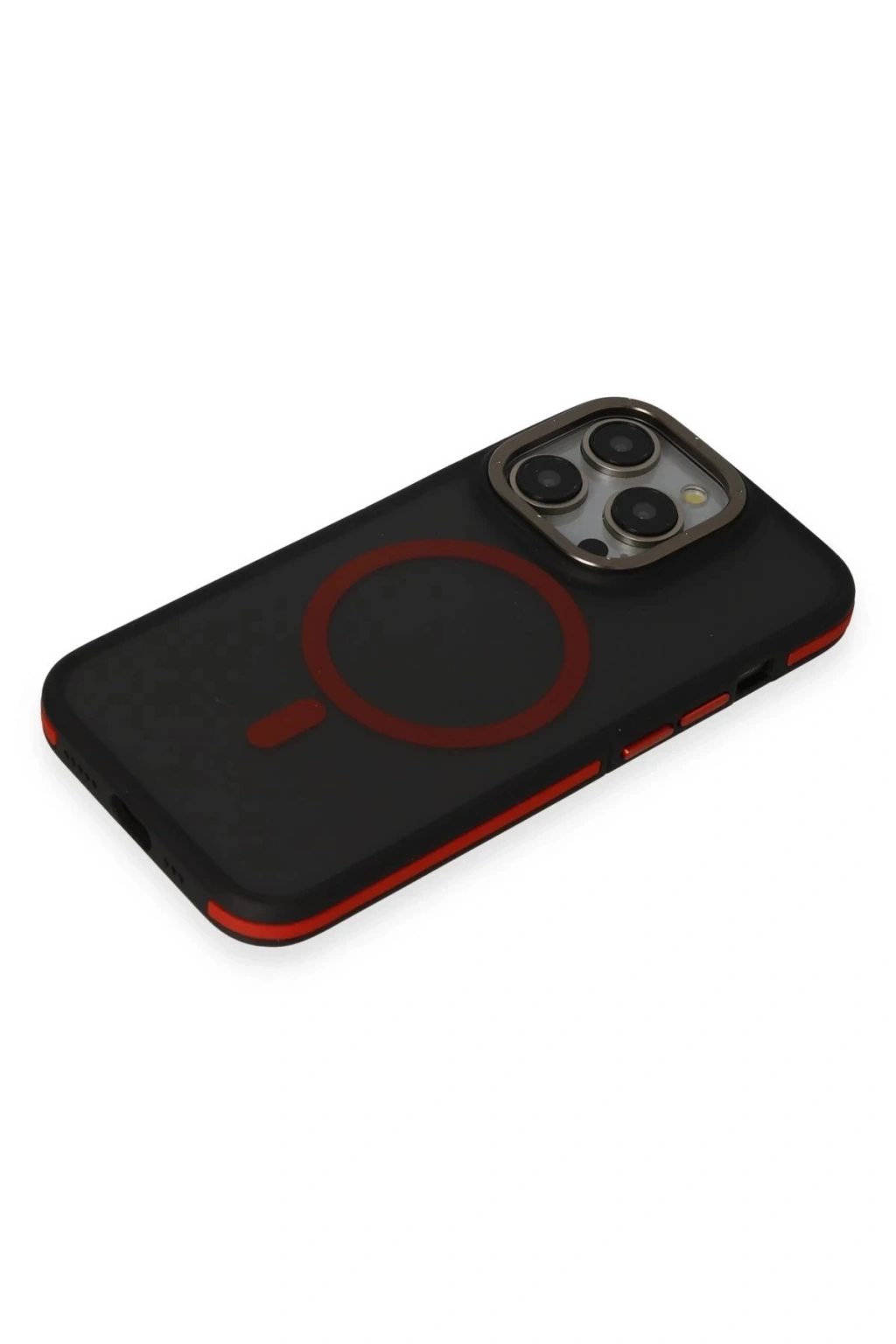 iPhone 15 Pro Rocky Magsafe Kapak - Siyah-Kırmızı
