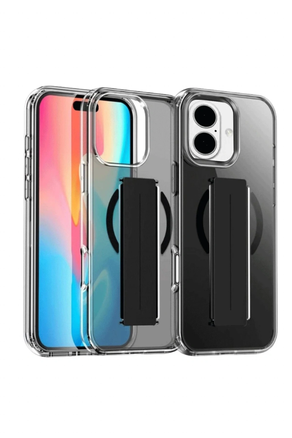 iPhone 16 Kılıf Alfa Magsafe Standlı Kapak - Siyah