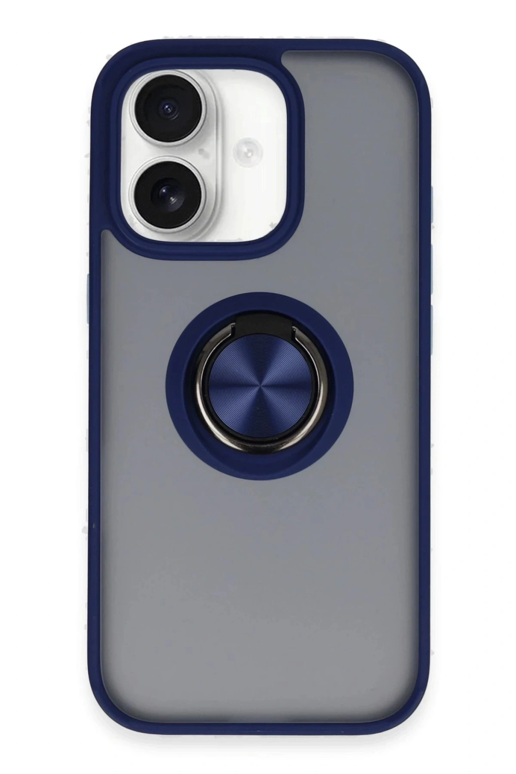 iPhone 16 Kılıf Montreal Yüzüklü Silikon Kapak - Lacivert