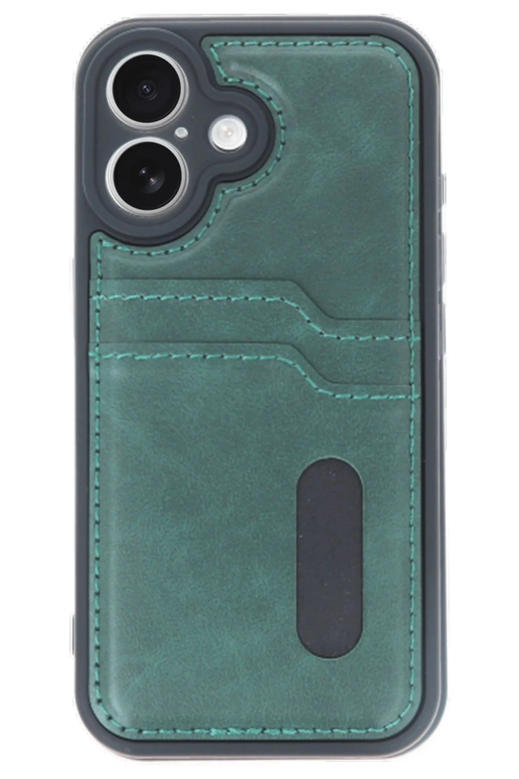iPhone 16 Kılıf Sara Kartvizitli Deri Kılıf - Koyu Yeşil