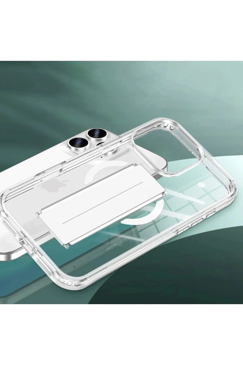 iPhone 16 Pro Max Kılıf Alfa Magsafe Standlı Kapak - Şeffaf