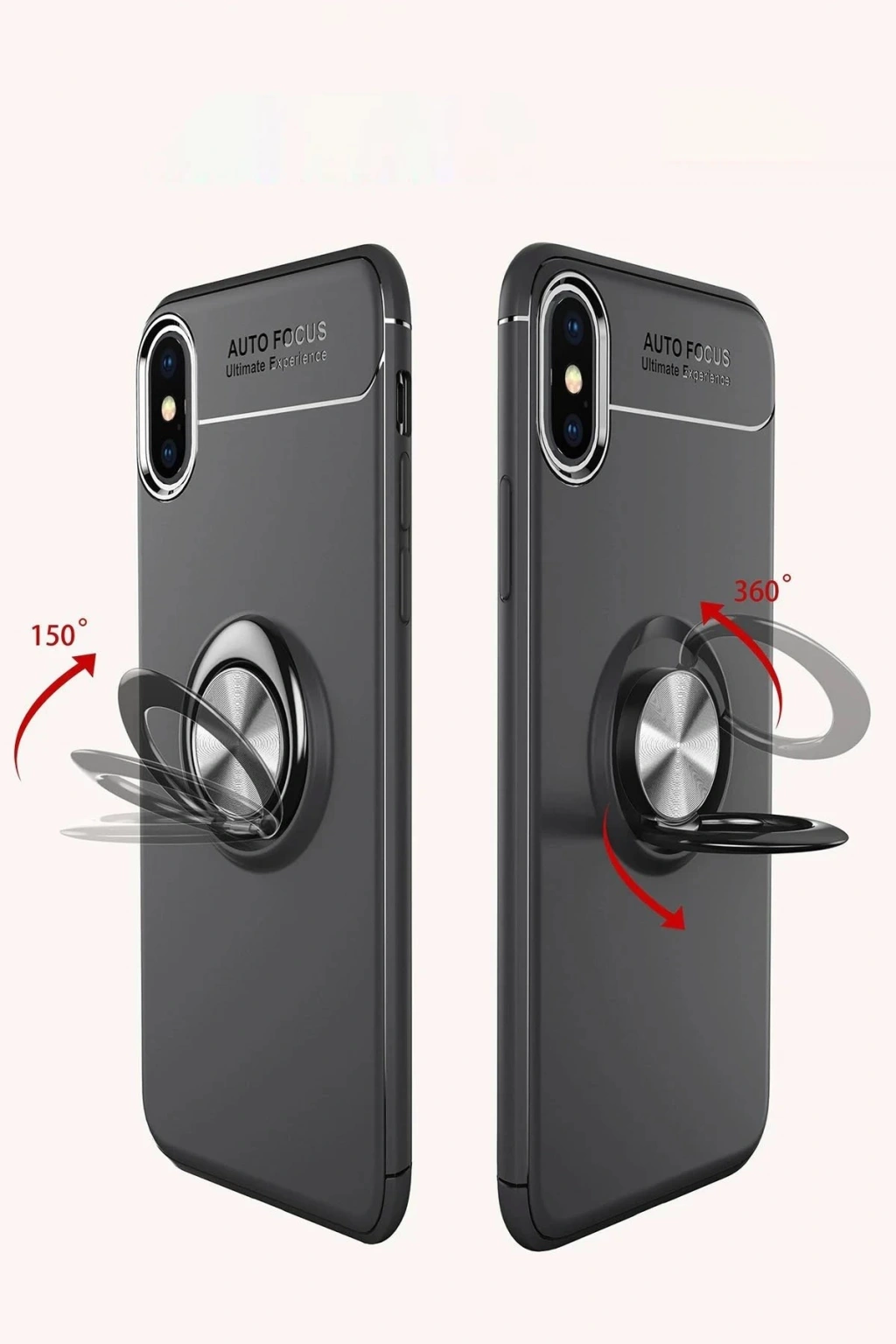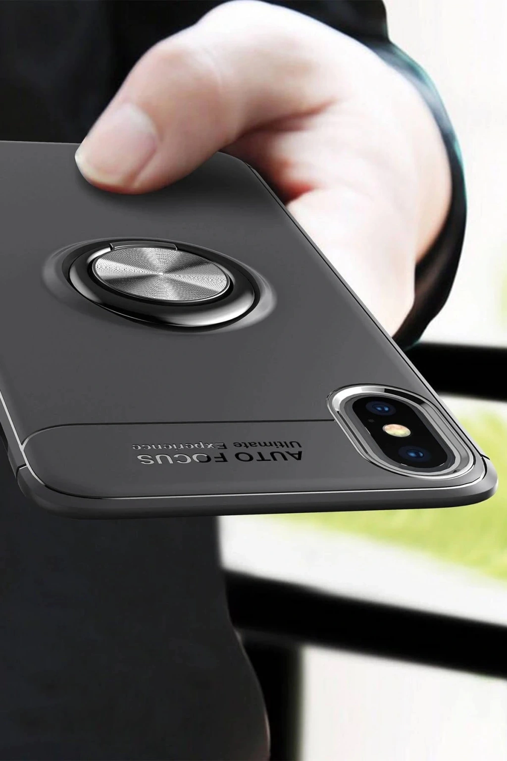 iPhone XS Max Kılıf Range Yüzüklü Silikon - Siyah-Gold
