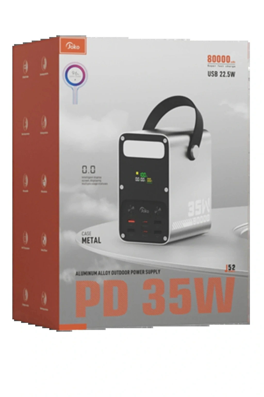 J52 80.000 mAh Dijital Şarj Göstergeli Led Işıklı 35W PD Powerbank