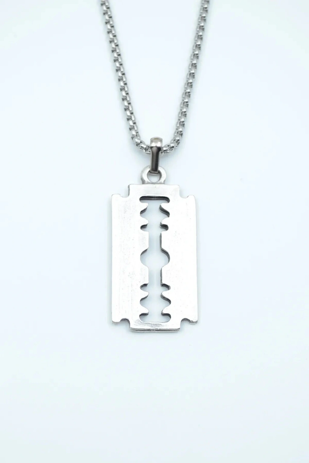 Jilet Çelik Kolye - Jilet Model Paslanmaz Gümüş Renk Çelik Kolye