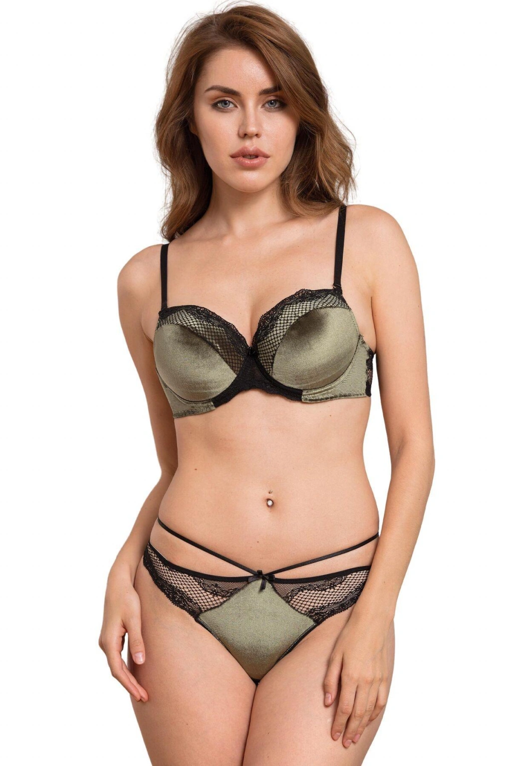 Kadife Balenli Destekli Dolgulu Askıları Çıkabilen Dantelli Sütyen Ve String Takım
