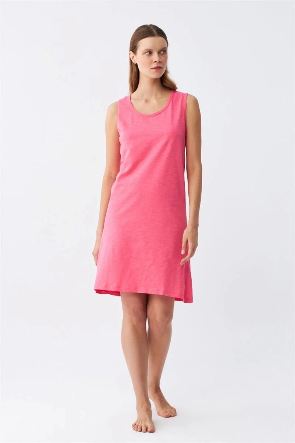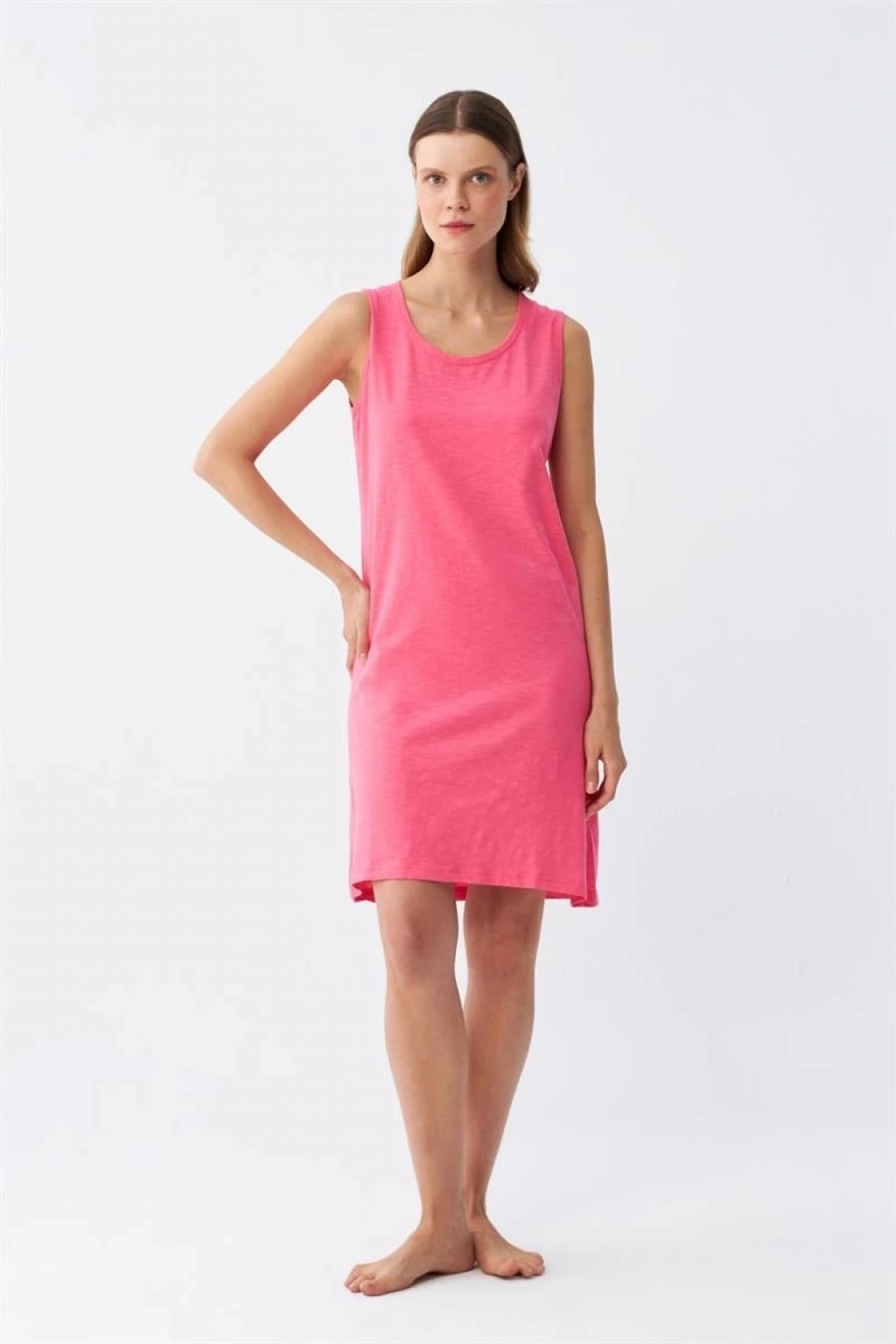 Çamaşır Kenti markasının şık ve rahat tasarımına sahip Kadın Kalın Askılı Penye Gecelik Fuşya, günün yorgunluğunu üzerinizden atmanızı sağlar.
