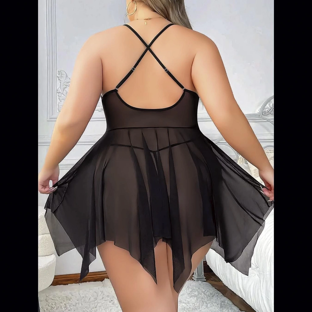 Nightlight Dantel Detaylı Fantazi Büyük Beden Tül Gecelik