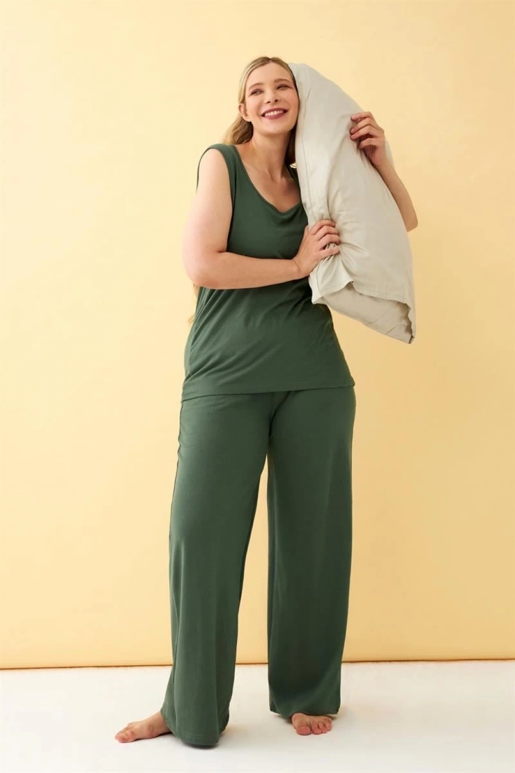 Çamaşır Kenti markasının özel tasarımı olan Kadın Yeşil Büyük Beden Penye Alt Üst Takım, şıklık ve konforu bir arada sunuyor. Sade ve şık tasarımı ile her stilin tamamlayıcısı olacak bu takım, büyük beden olmasıyla da rahat bir kullanım sunuyor.