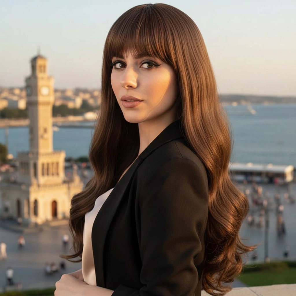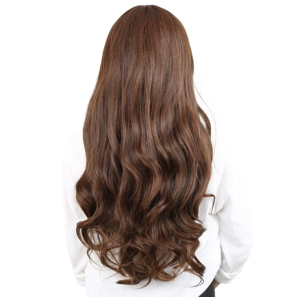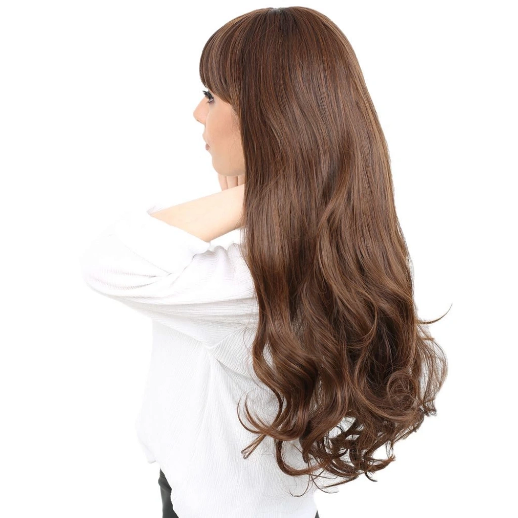 Kahküllü Uzun Dalgalı Fiber Sentetik Peruk - Kahve Karamel