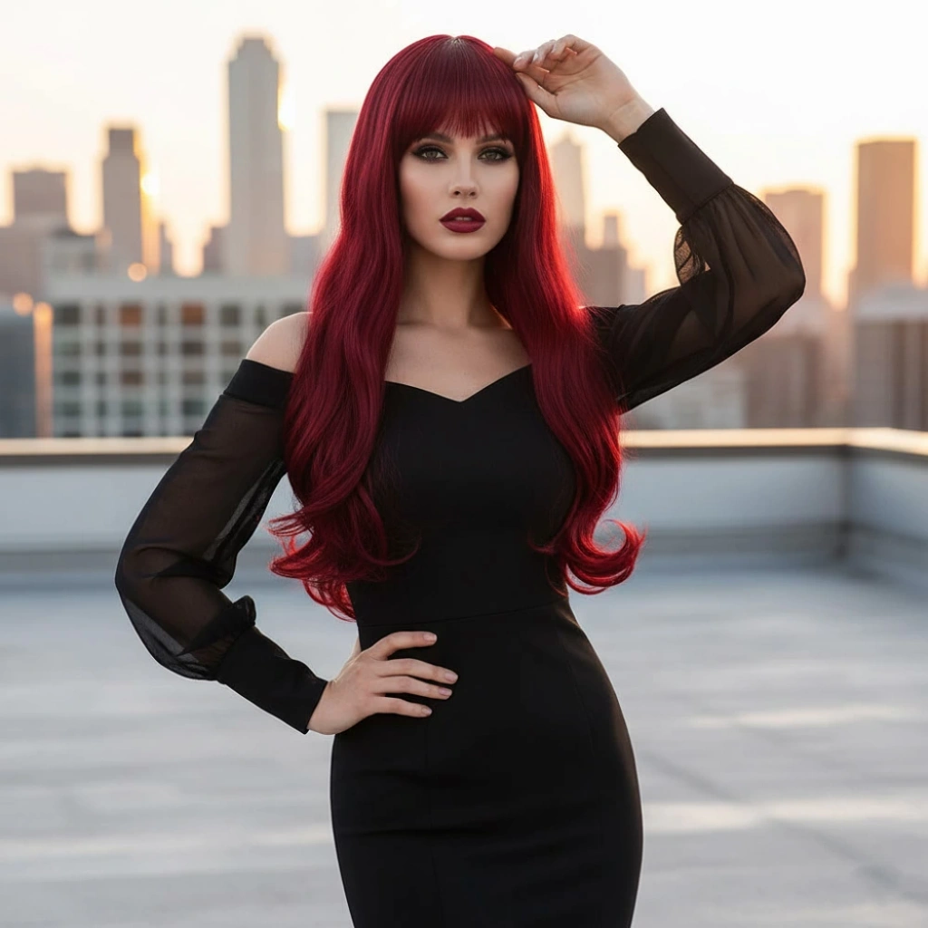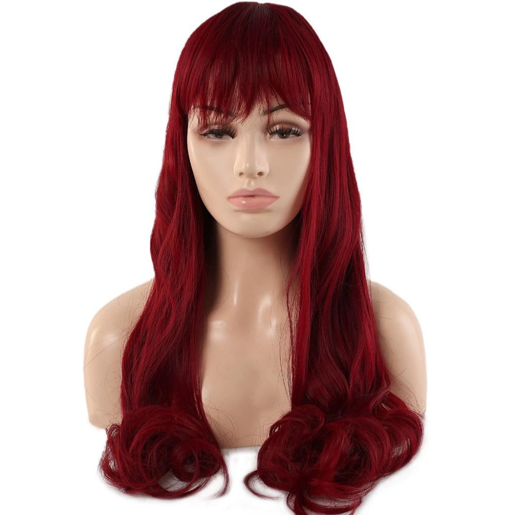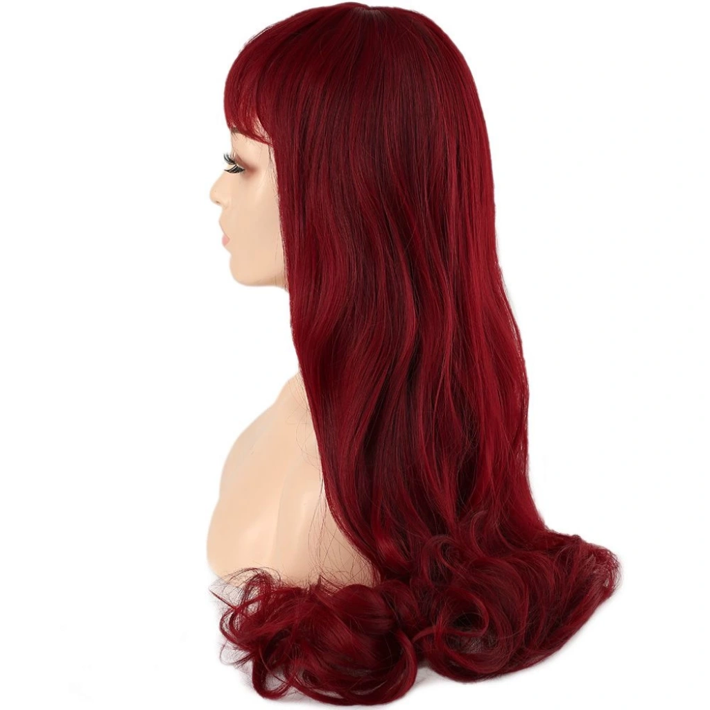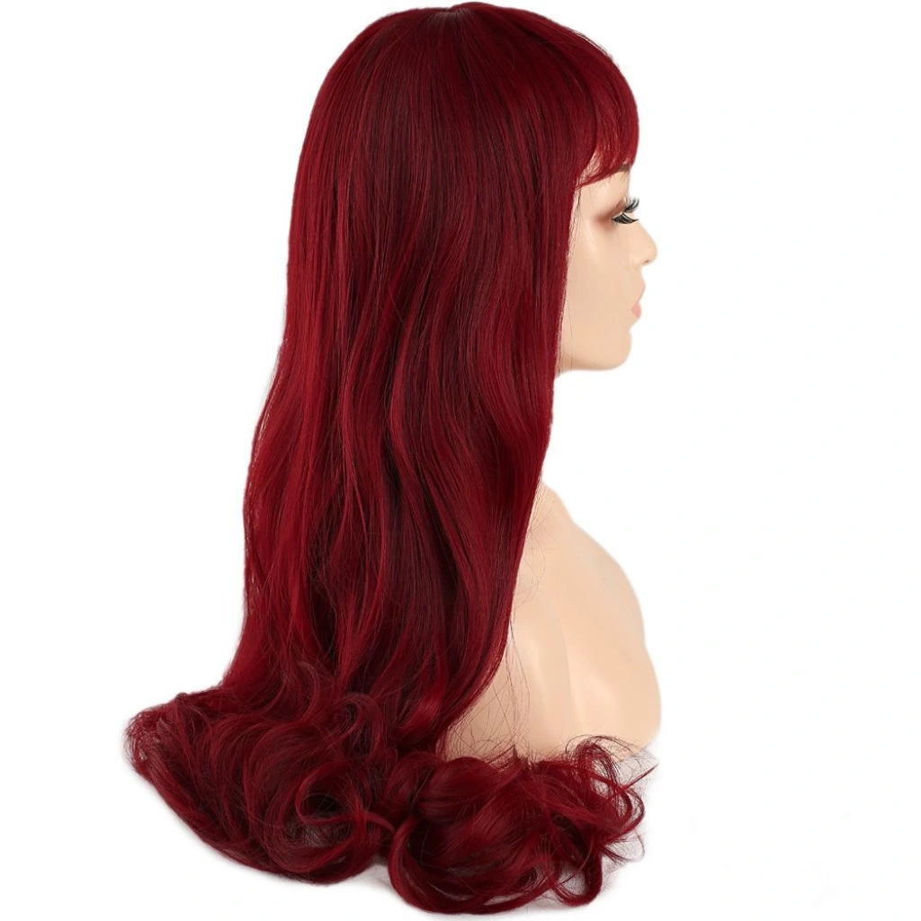 Dalgalı Perçemli Uzun Fiber Sentetik Peruk - Kızıl