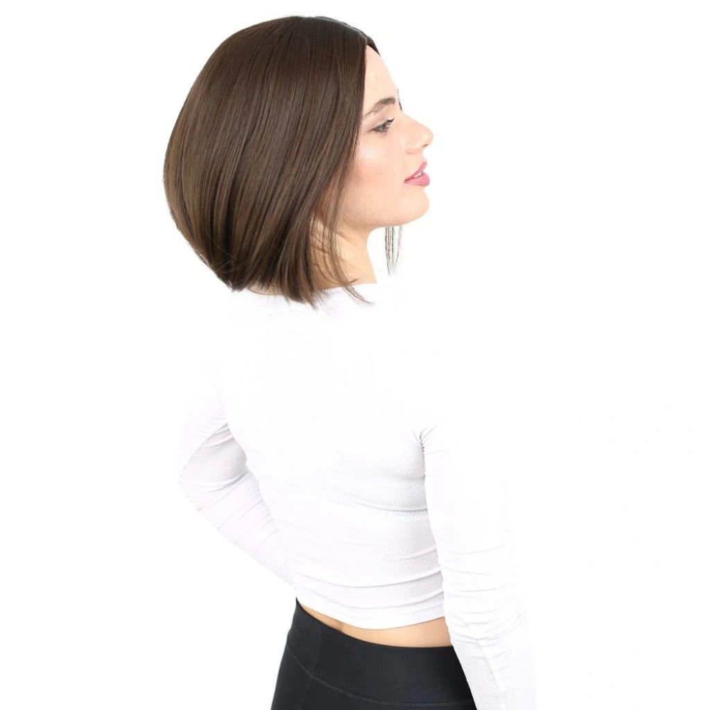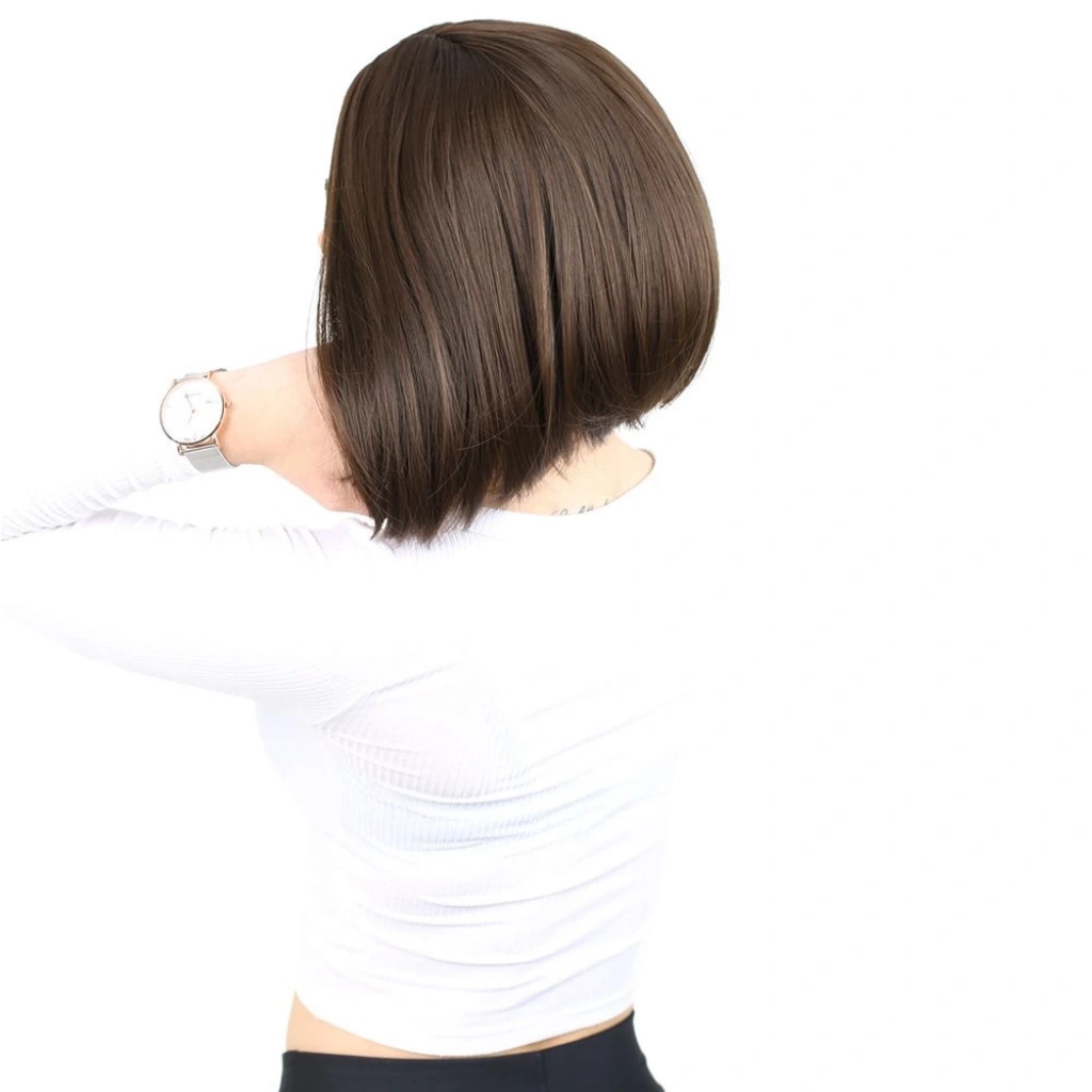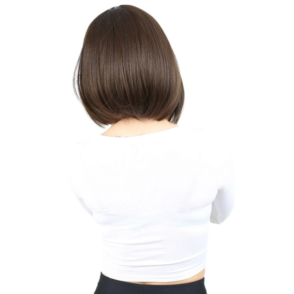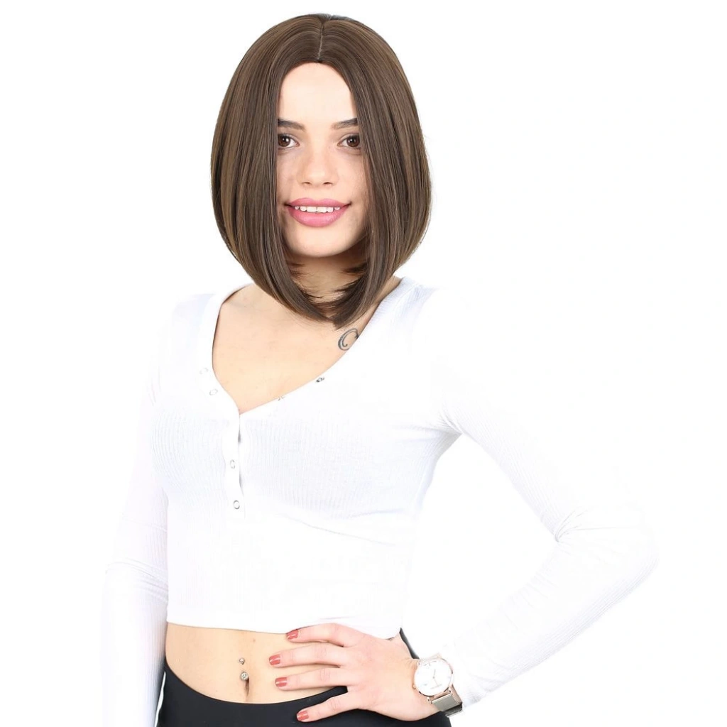Kahkülsüz Düz Kısa Fiber Sentetik Peruk - Açık Kahve