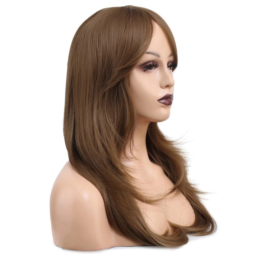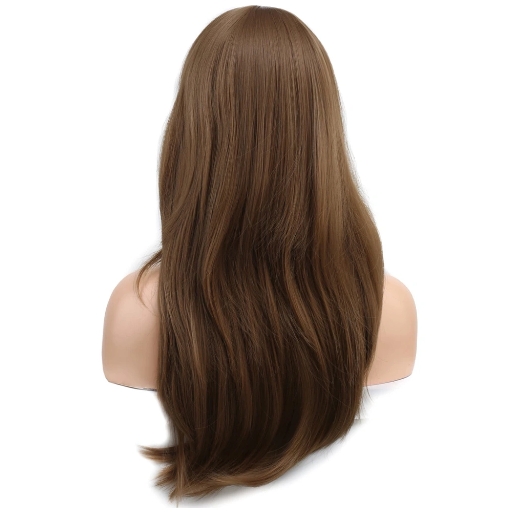 Dalgalı Perçemli Uzun Fiber Sentetik Peruk - Koyu Kumral