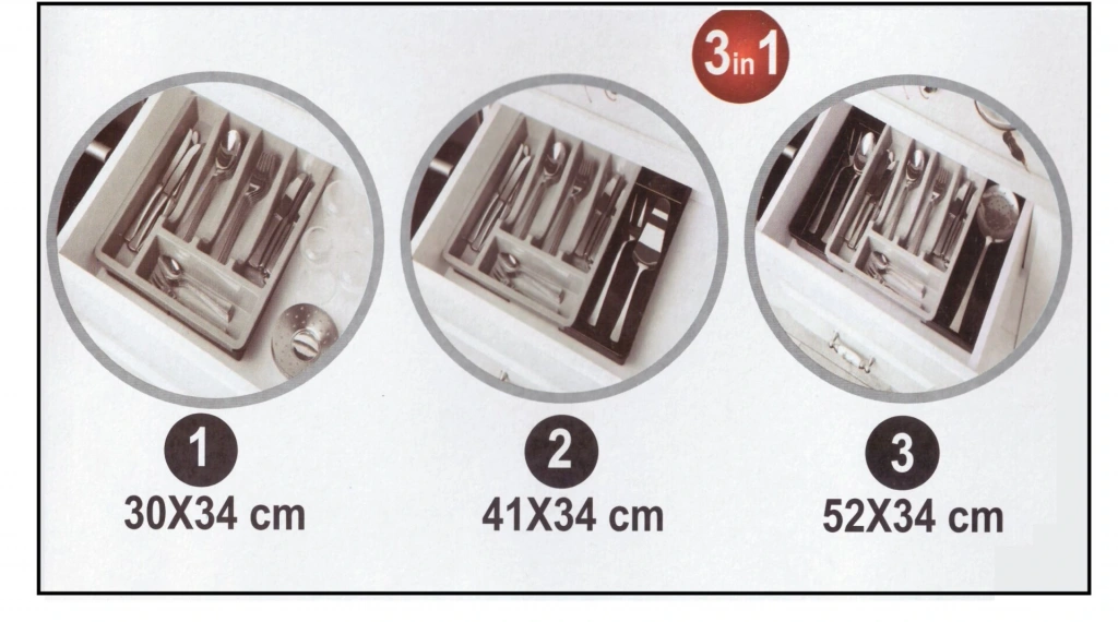 1 adet Kayar Kaşıklık Organizeri - 3 Aşamalı Sürgülü - Sağ Sol Açılır