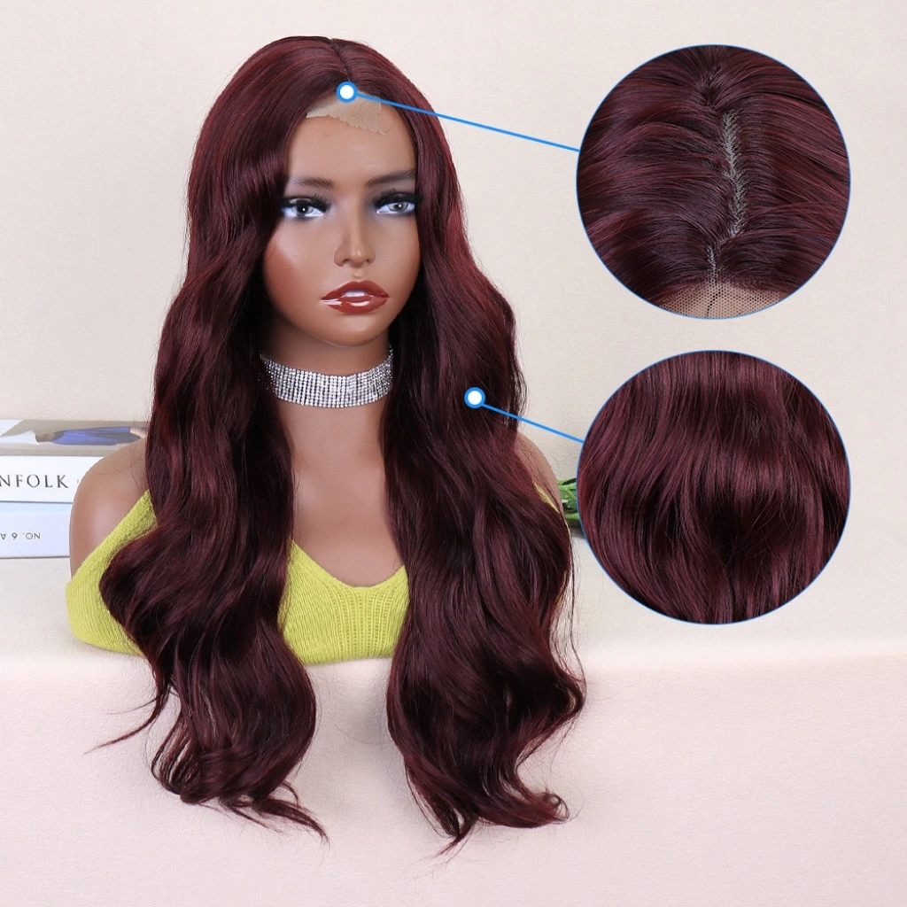 Uzun Kumral Balköpüğü Işıltılı Su Dalgalı Tül Peruk