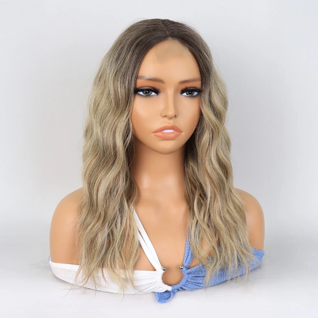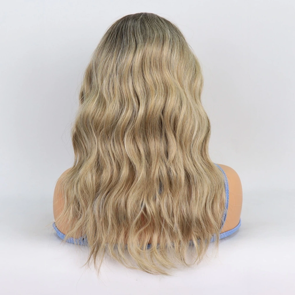 Açık Kumral Platin Ombreli Dalgalı Tül Peruk
