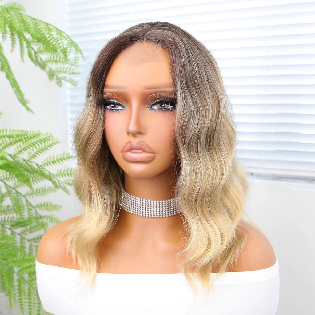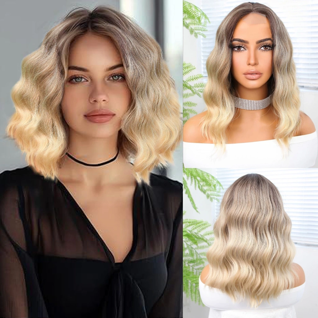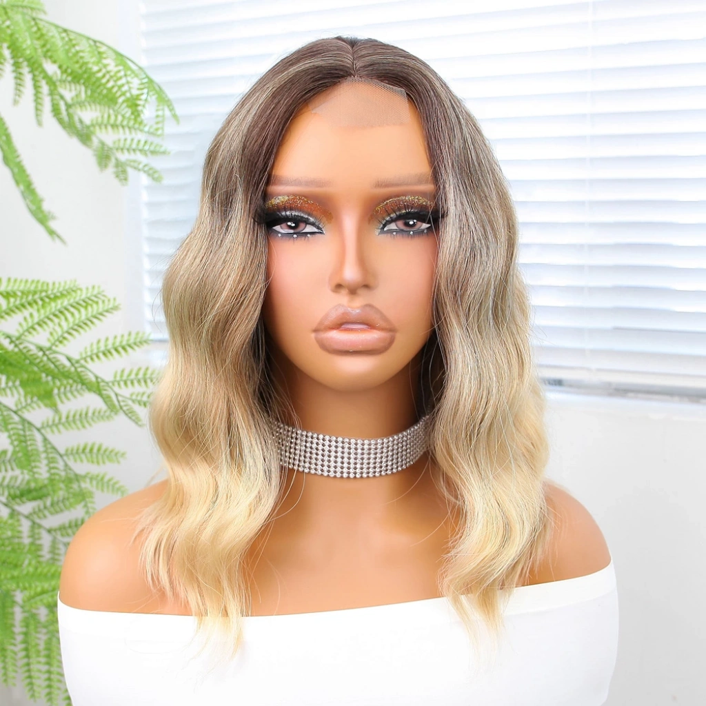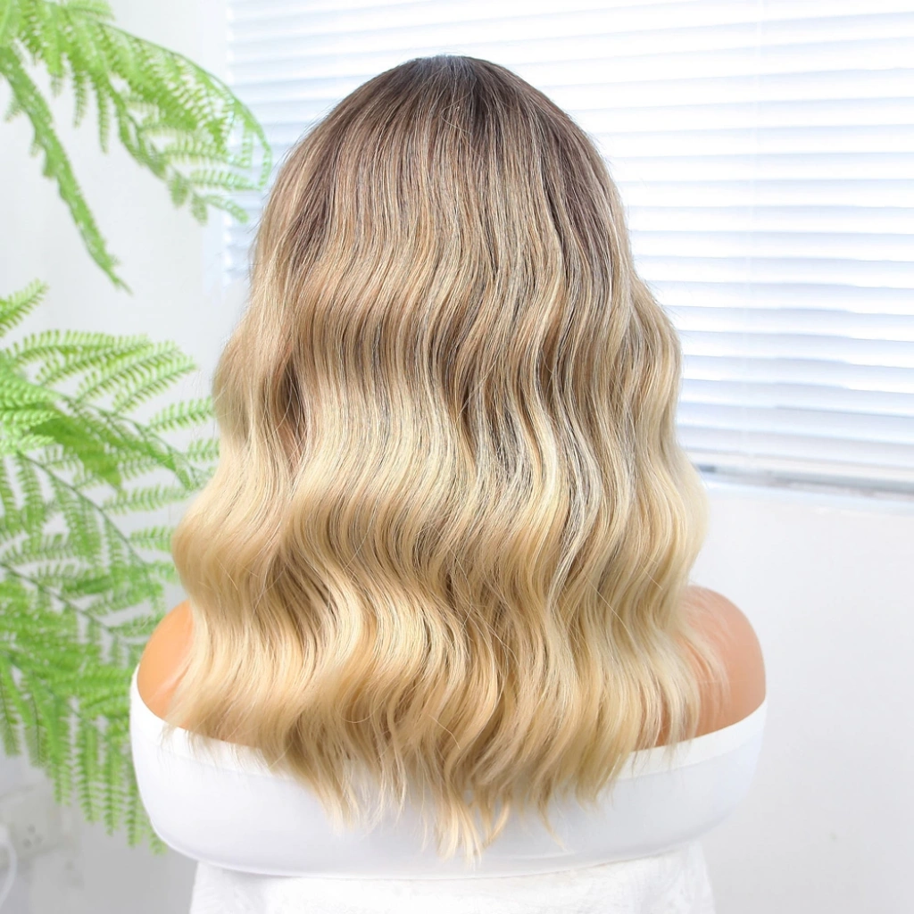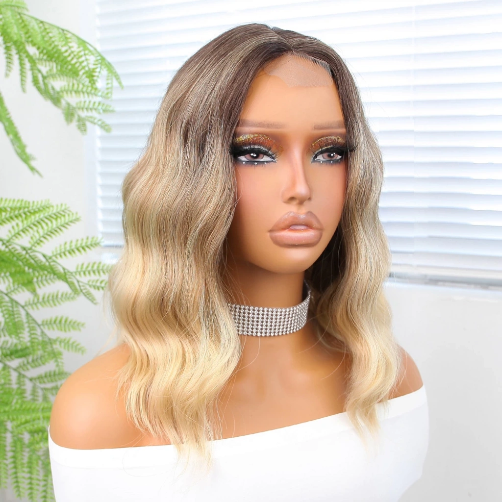 Açık Kumral Platin Ombreli Dalgalı Tül Peruk