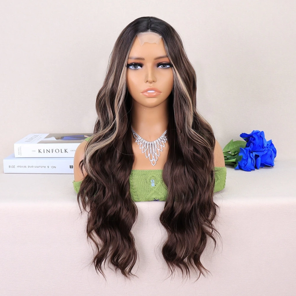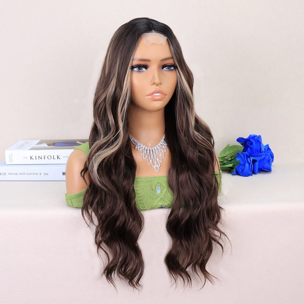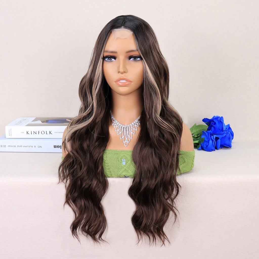 Açık Kumral Platin Ombreli Dalgalı Tül Peruk