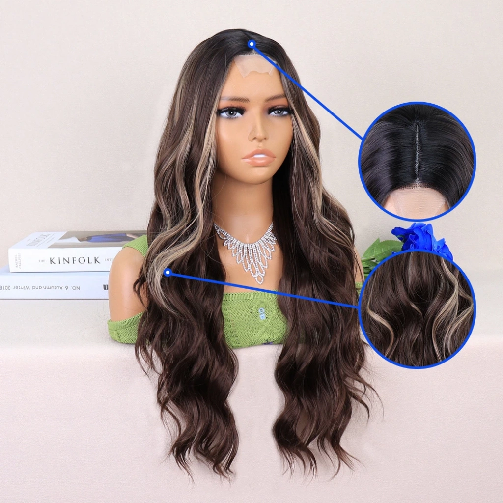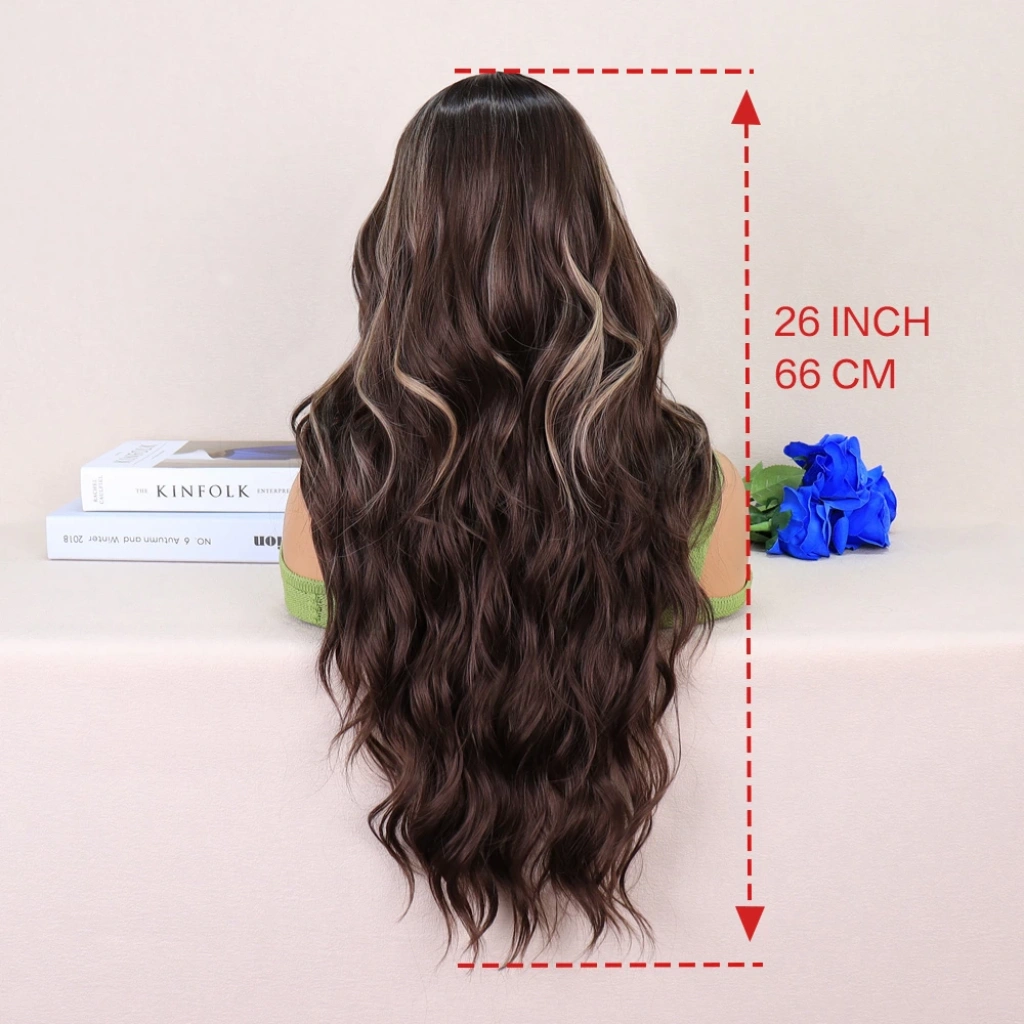 Uzun Kumral Balköpüğü Işıltılı Su Dalgalı Tül Peruk