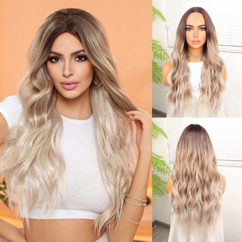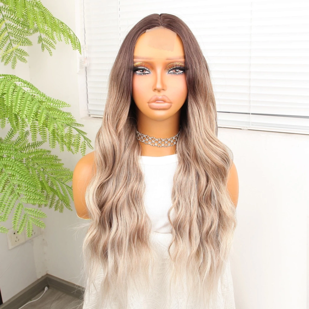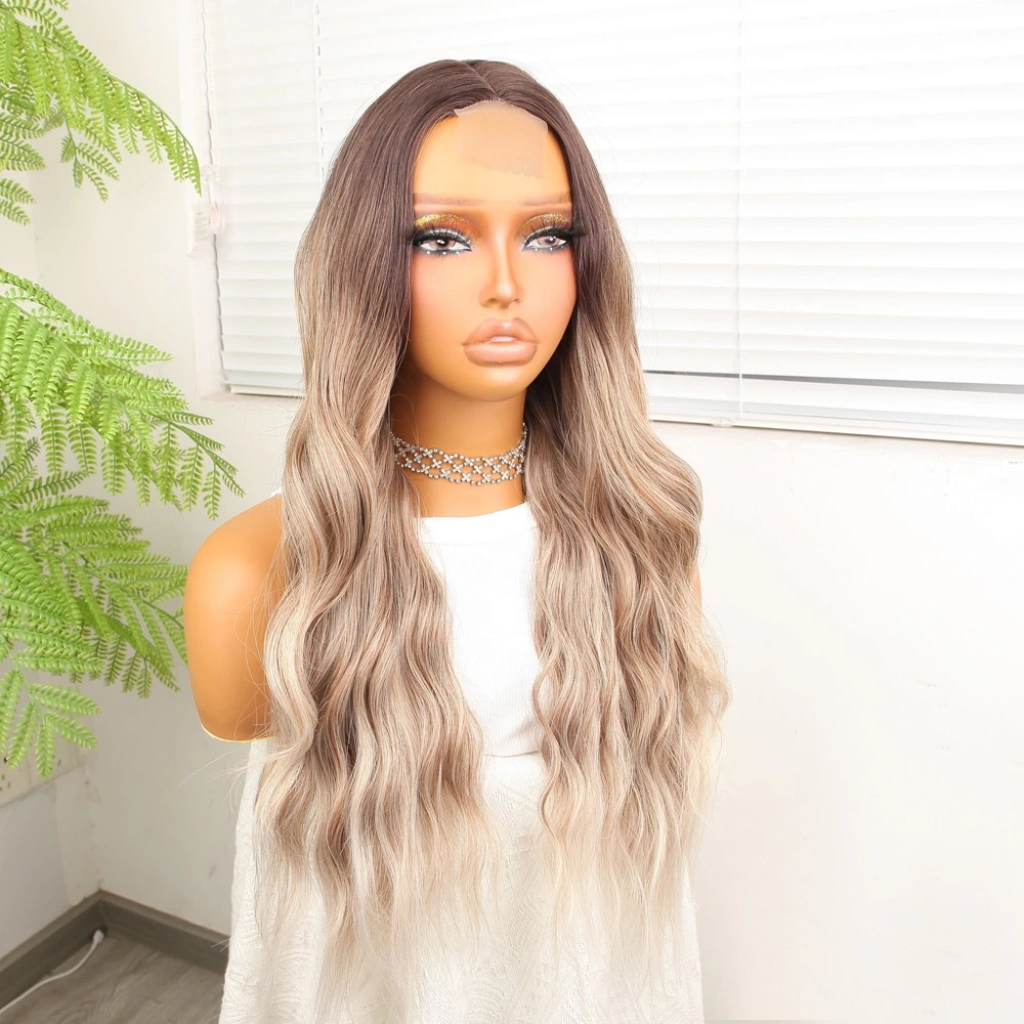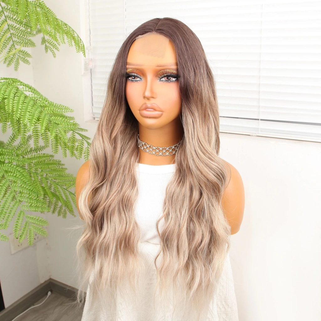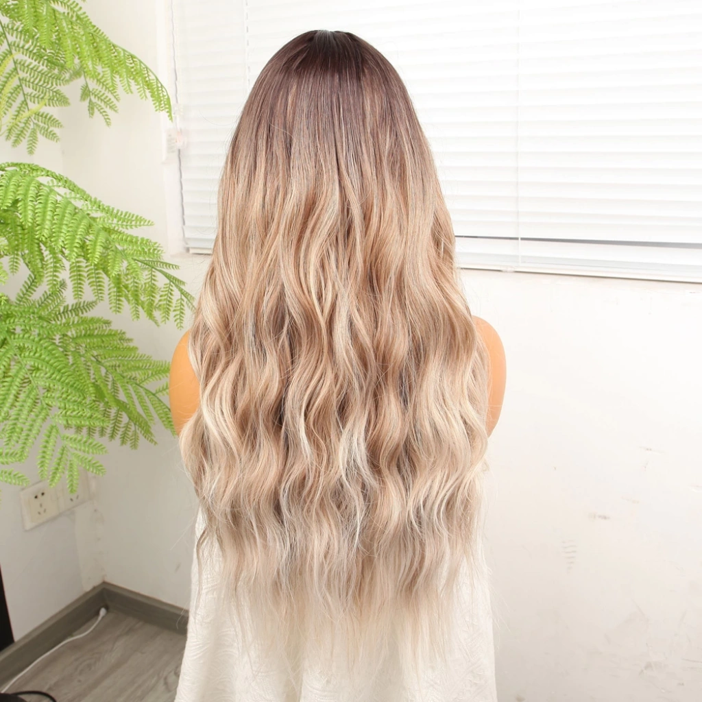 Açık Kumral Platin Ombreli Dalgalı Tül Peruk