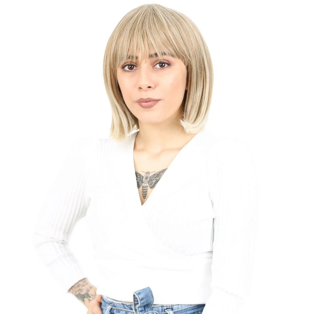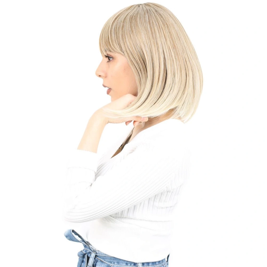 Dalgalı Kısa Perçemli Fiber Sentetik Peruk - Platin