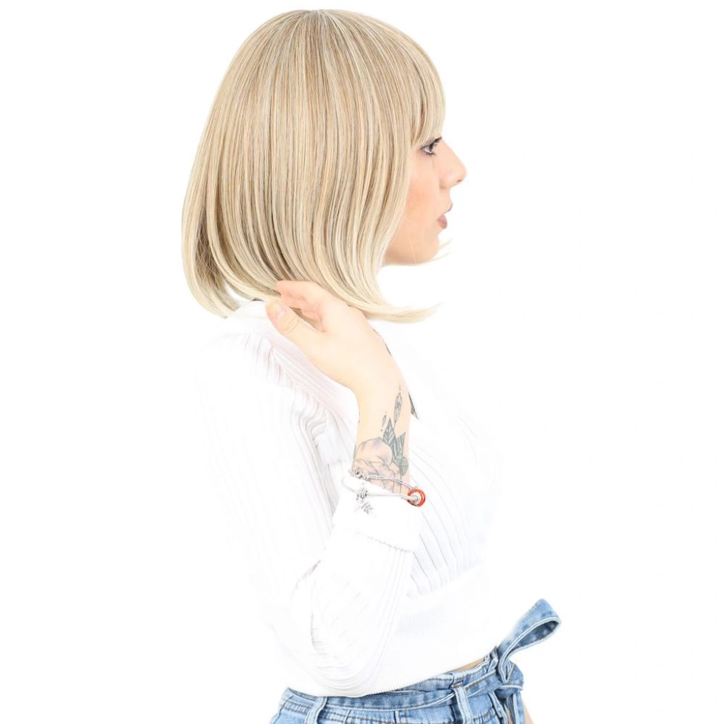 Dalgalı Perçemli Fiber Sentetik Orta Boy Peruk - Balköpüğü Platin Röfleli