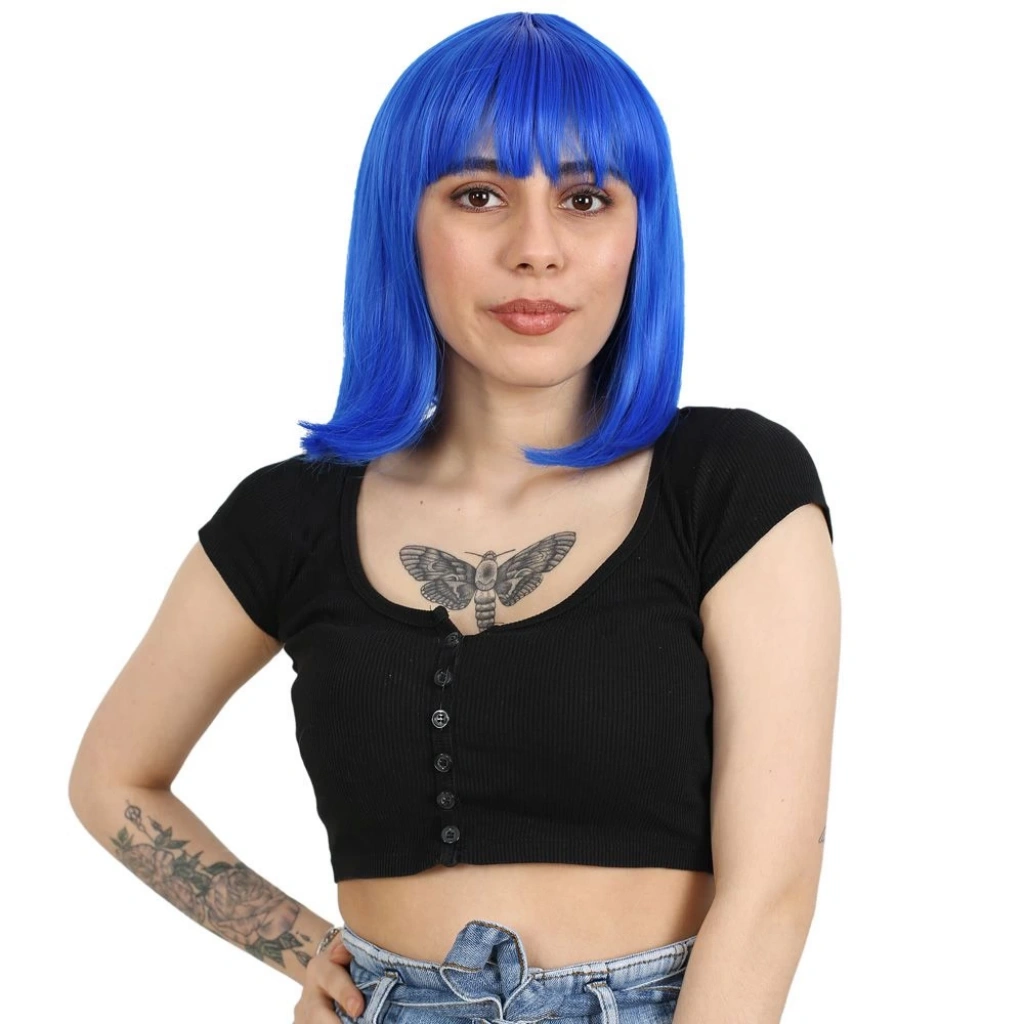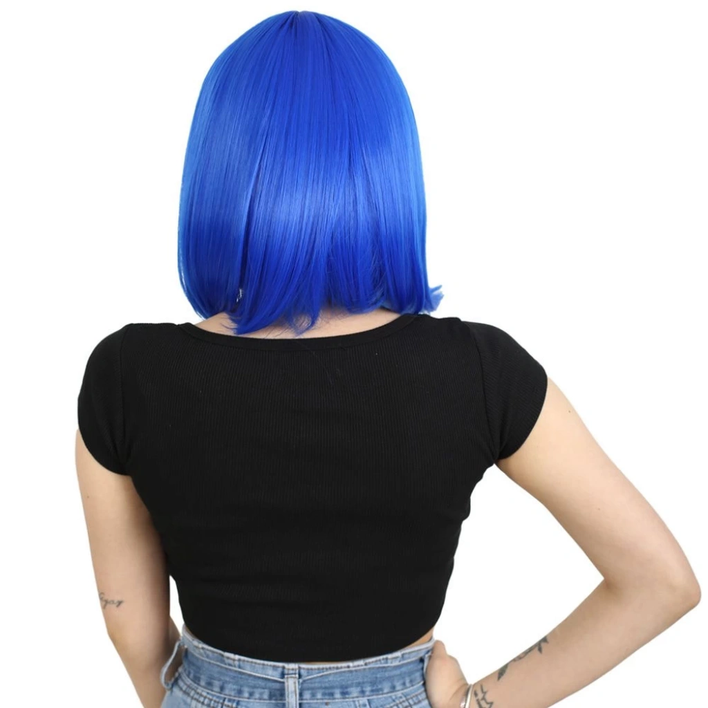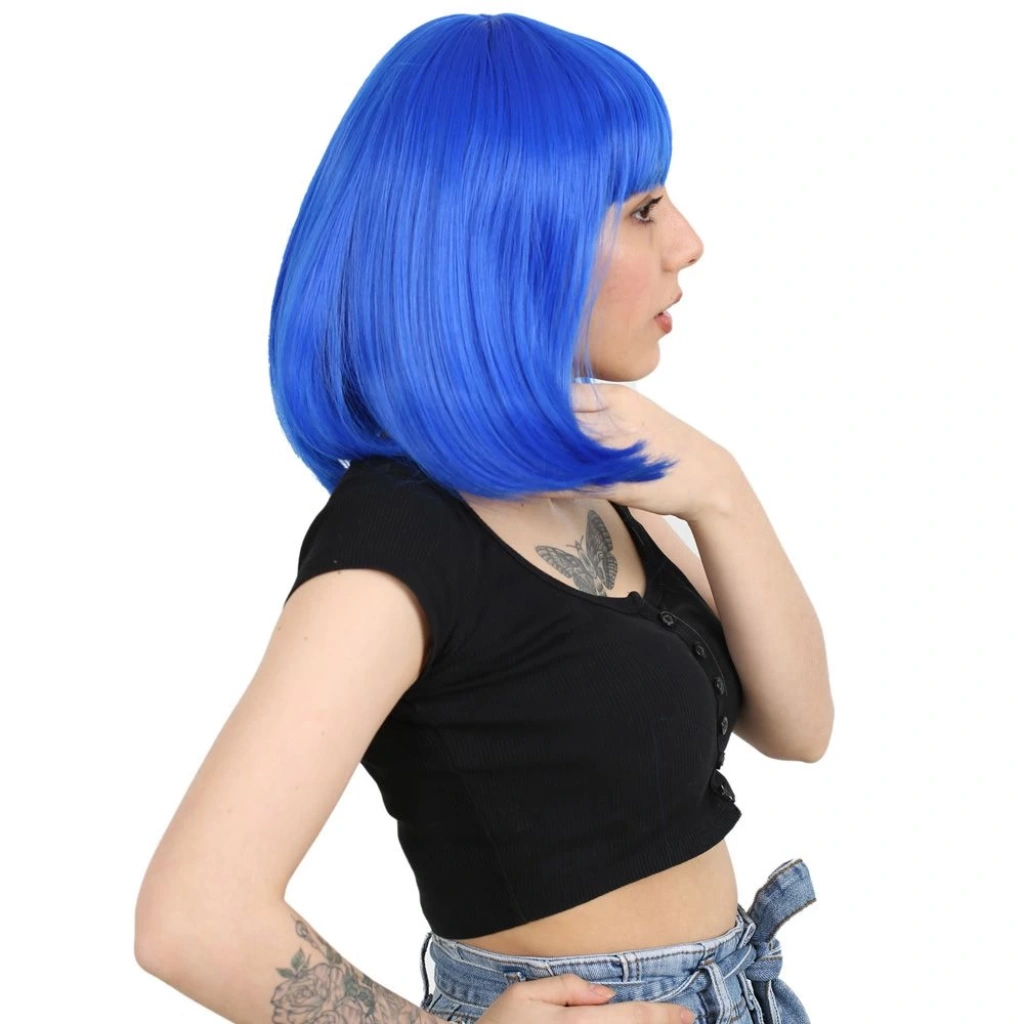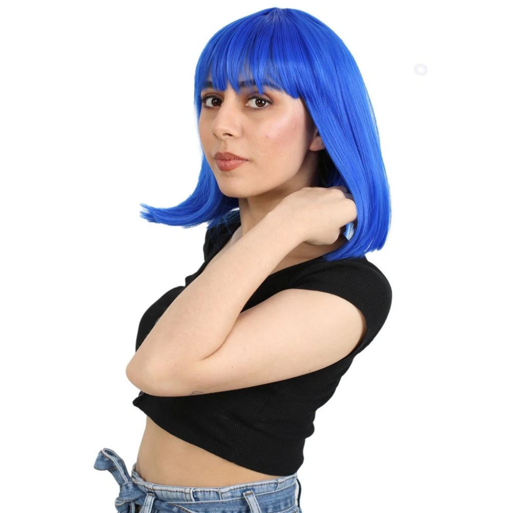 Küt Kahküllü Fiber Sentetik Peruk - Koyu Mavi