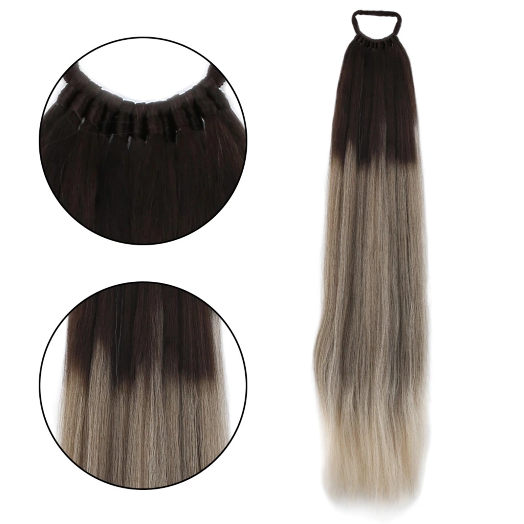 Lastik Tokalı At Kuyruğu Düz - Küllü Kumral / Beyaz Platin Ombre