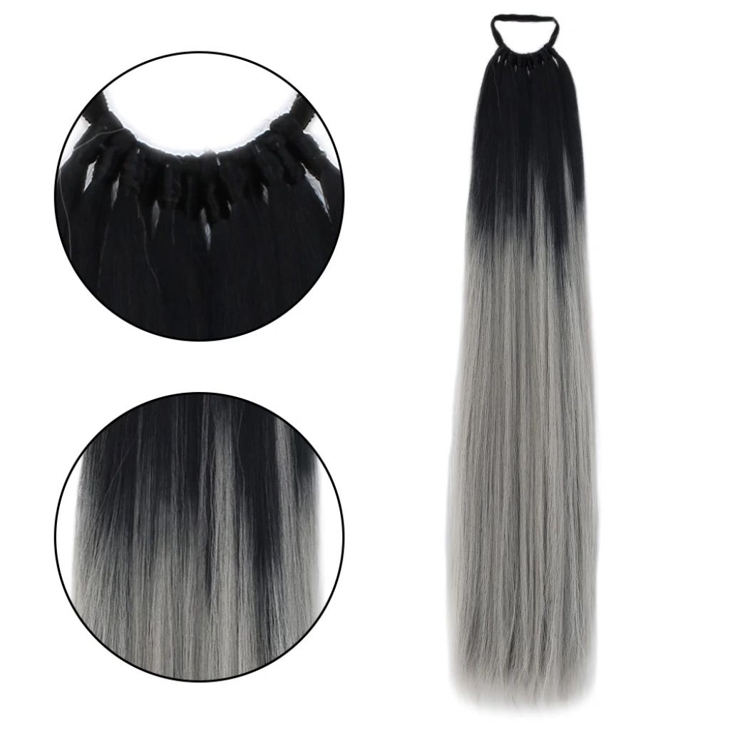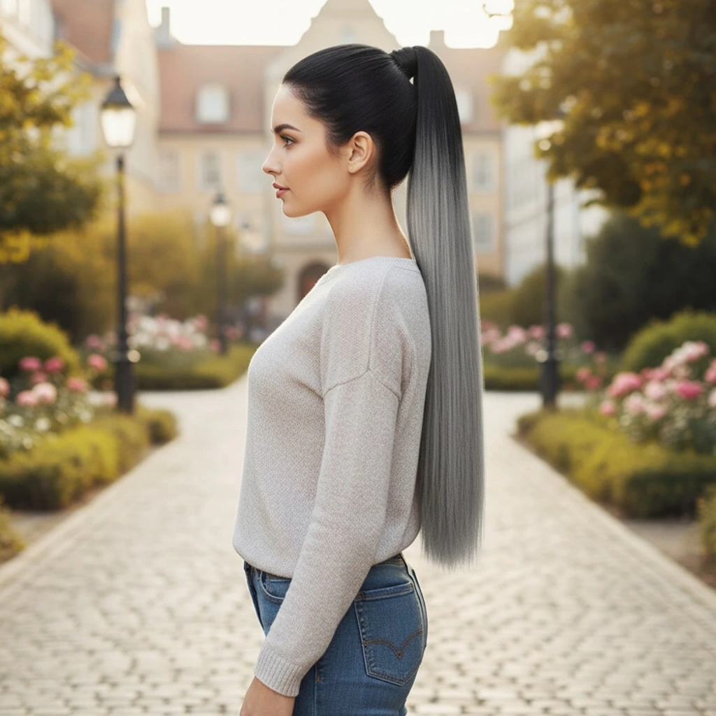 Lastik Tokalı At Kuyruğu Düz - Siyah / Gri Ombre