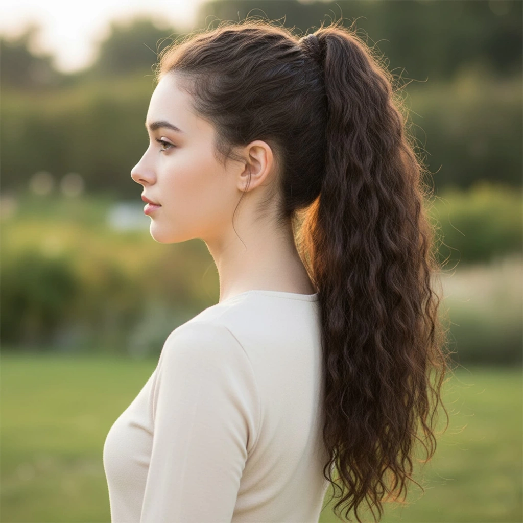 Lastik Tokalı At Kuyruğu Su Dalgalı - Kumral / Platin Ombre